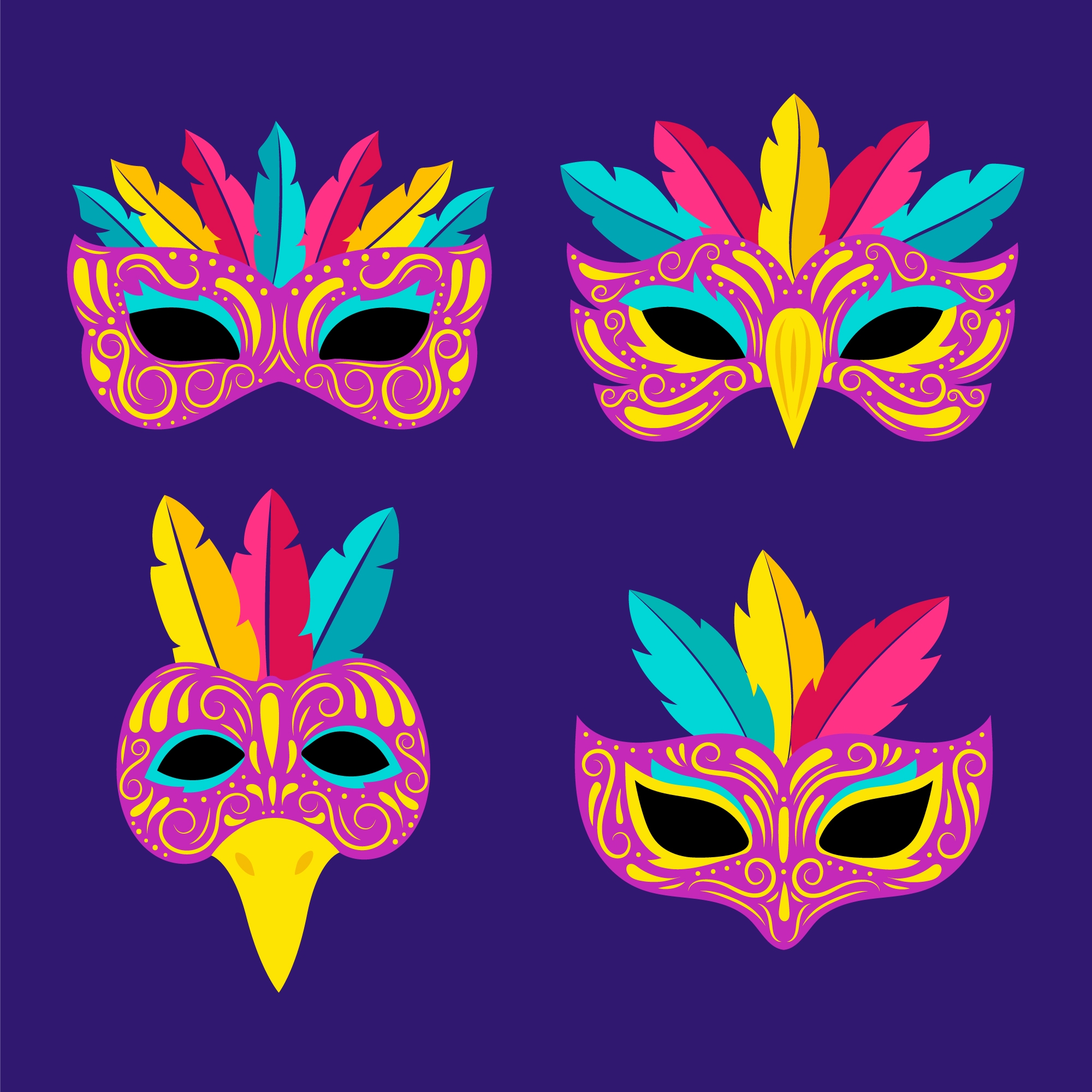 1 张 多款卡通面具舞会素材