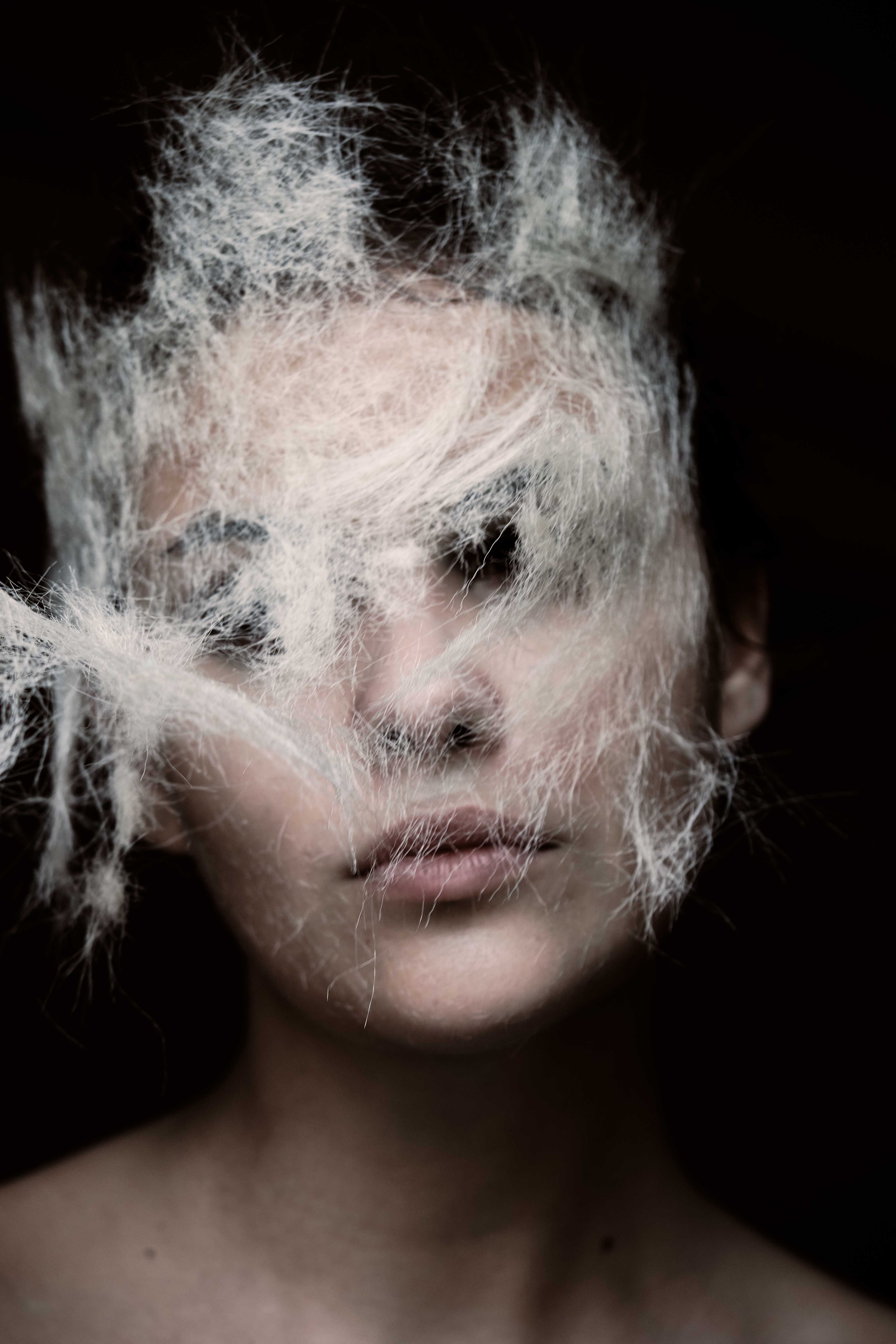 1 张 被烟雾絮状遮挡脸的美女