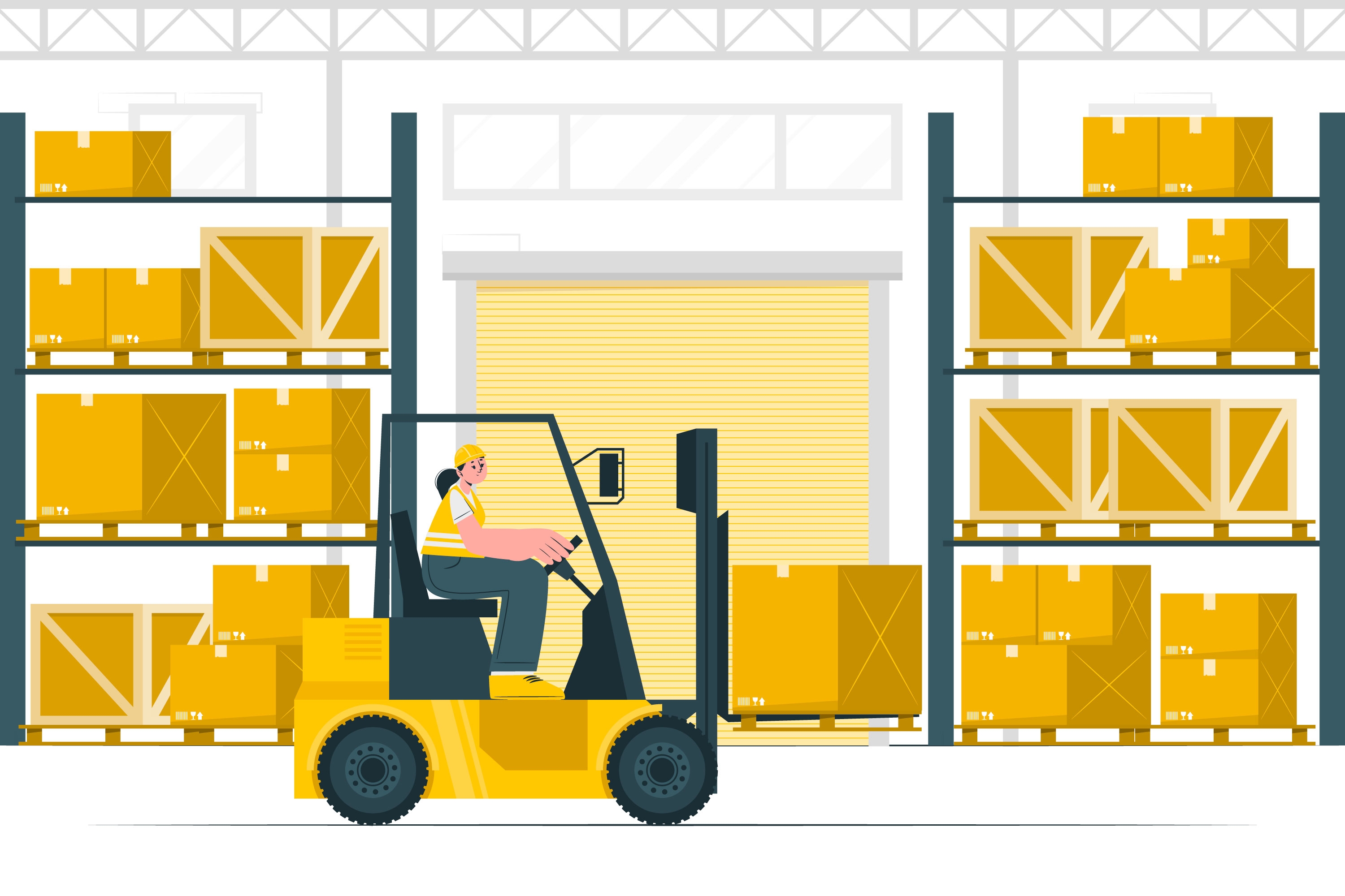 1 张 卡通物流仓库叉车场景