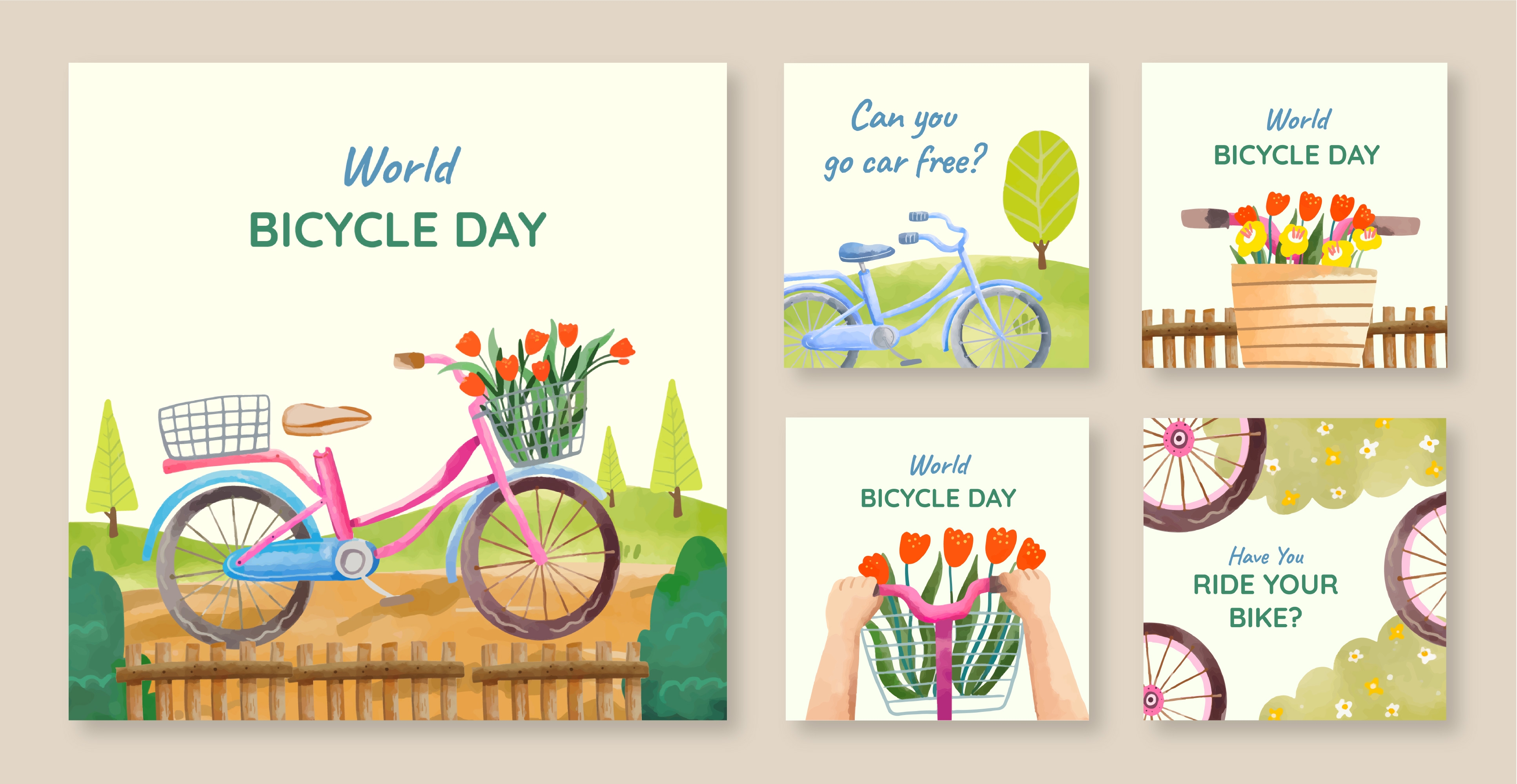 1 张 手绘卡通的世界自行车日庆祝活动