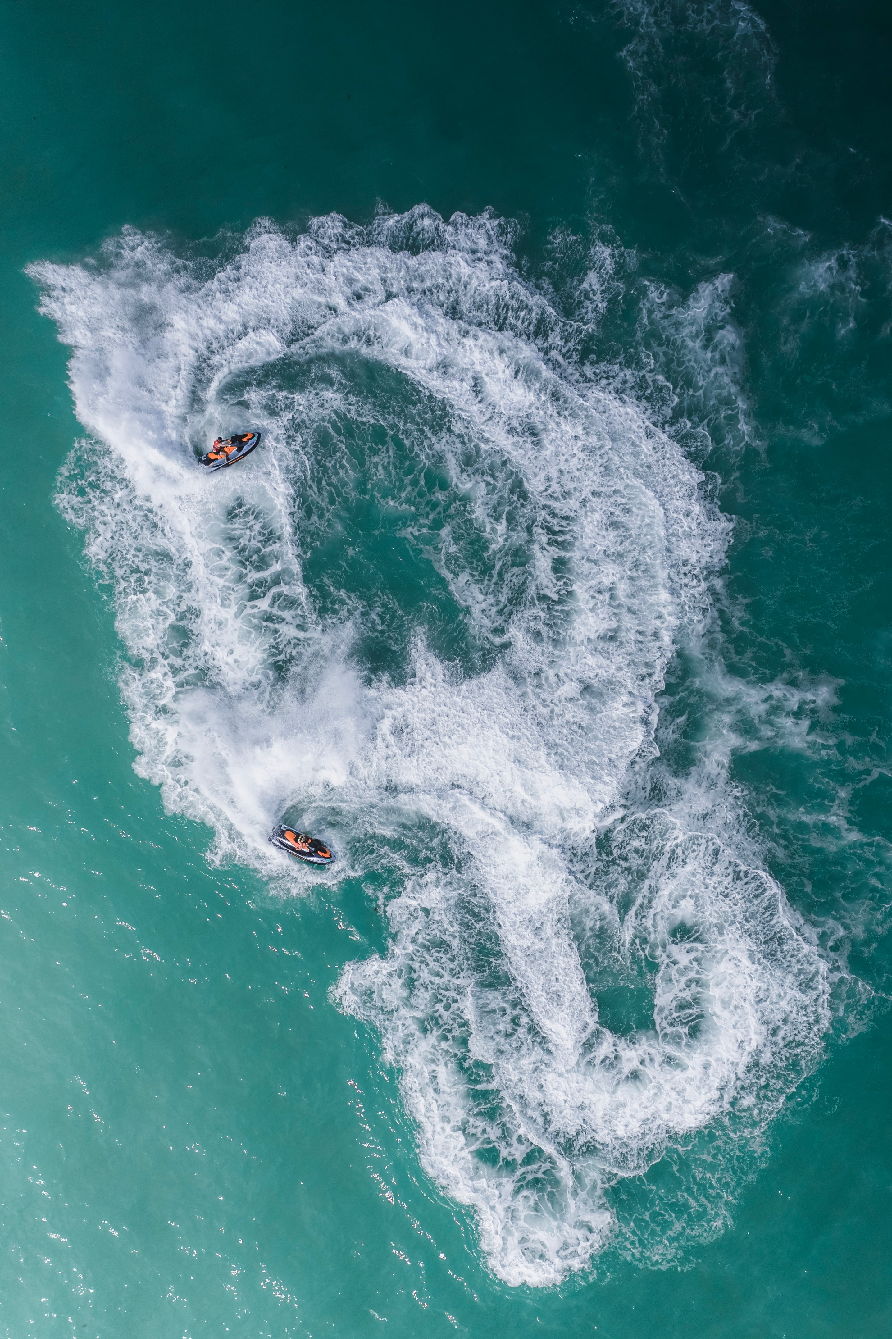 1 张 俯拍蓝海中开摩托艇旋转的运动图