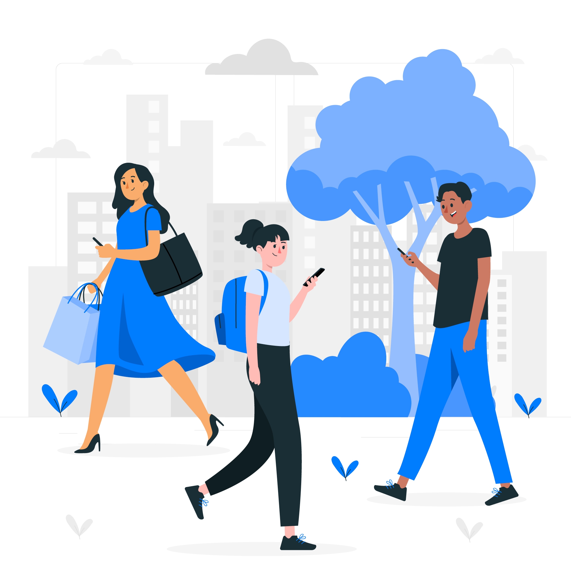 1 张 人们走路看手机概念图