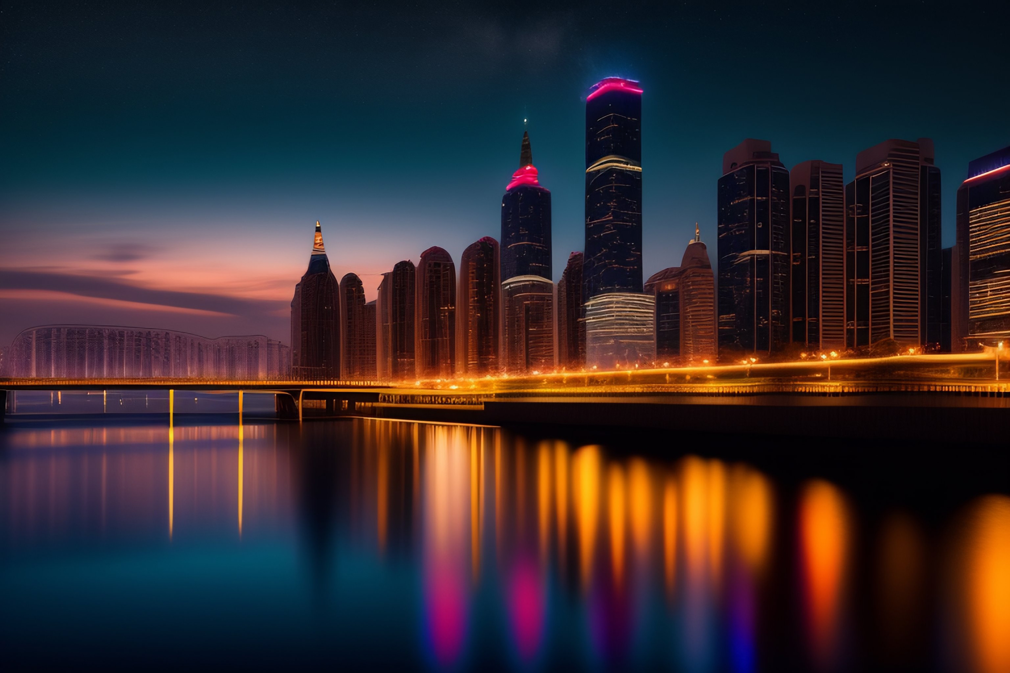1 张 粉红色的城市夜景倒影图