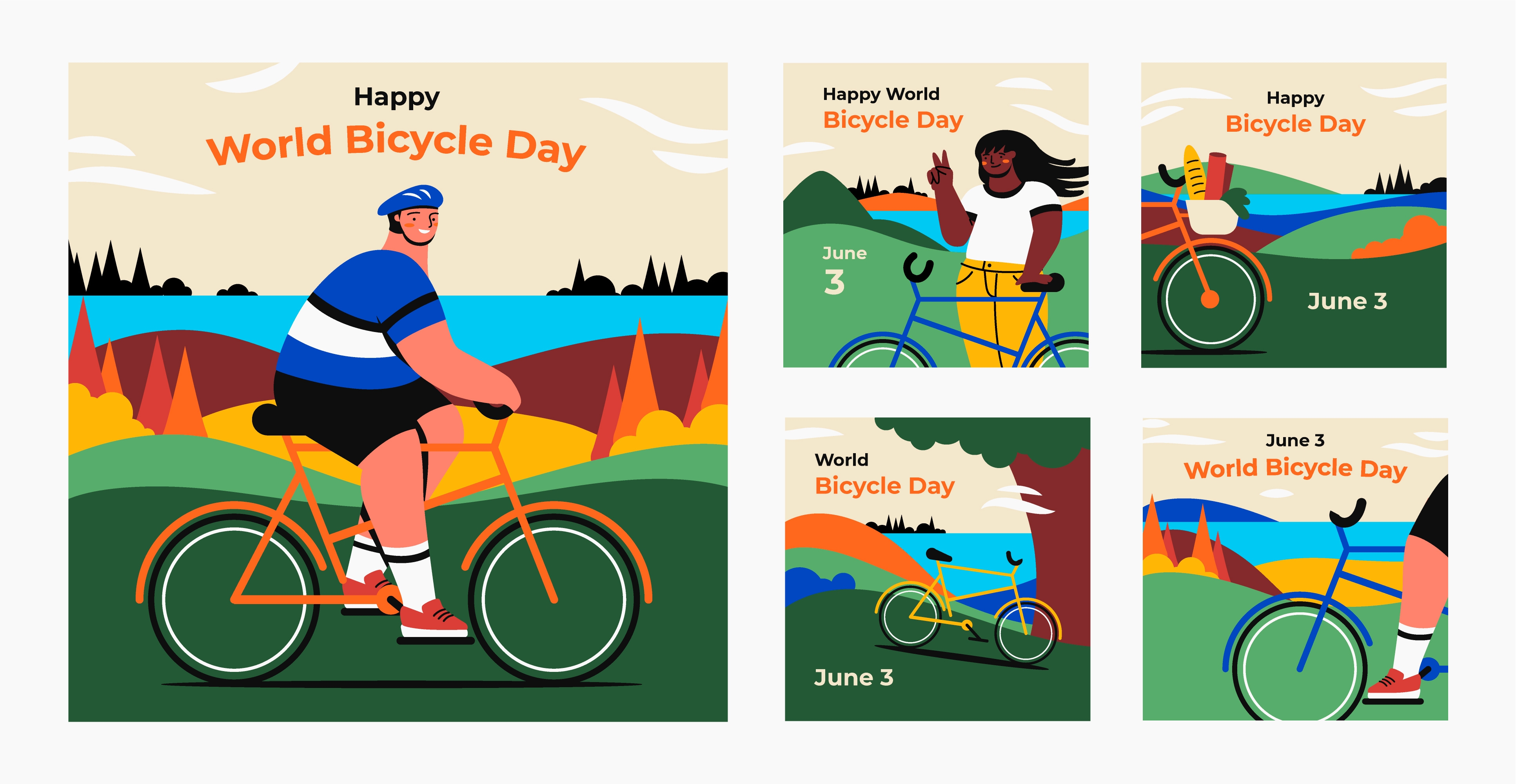 1 张 手绘卡通的世界自行车日庆祝活动