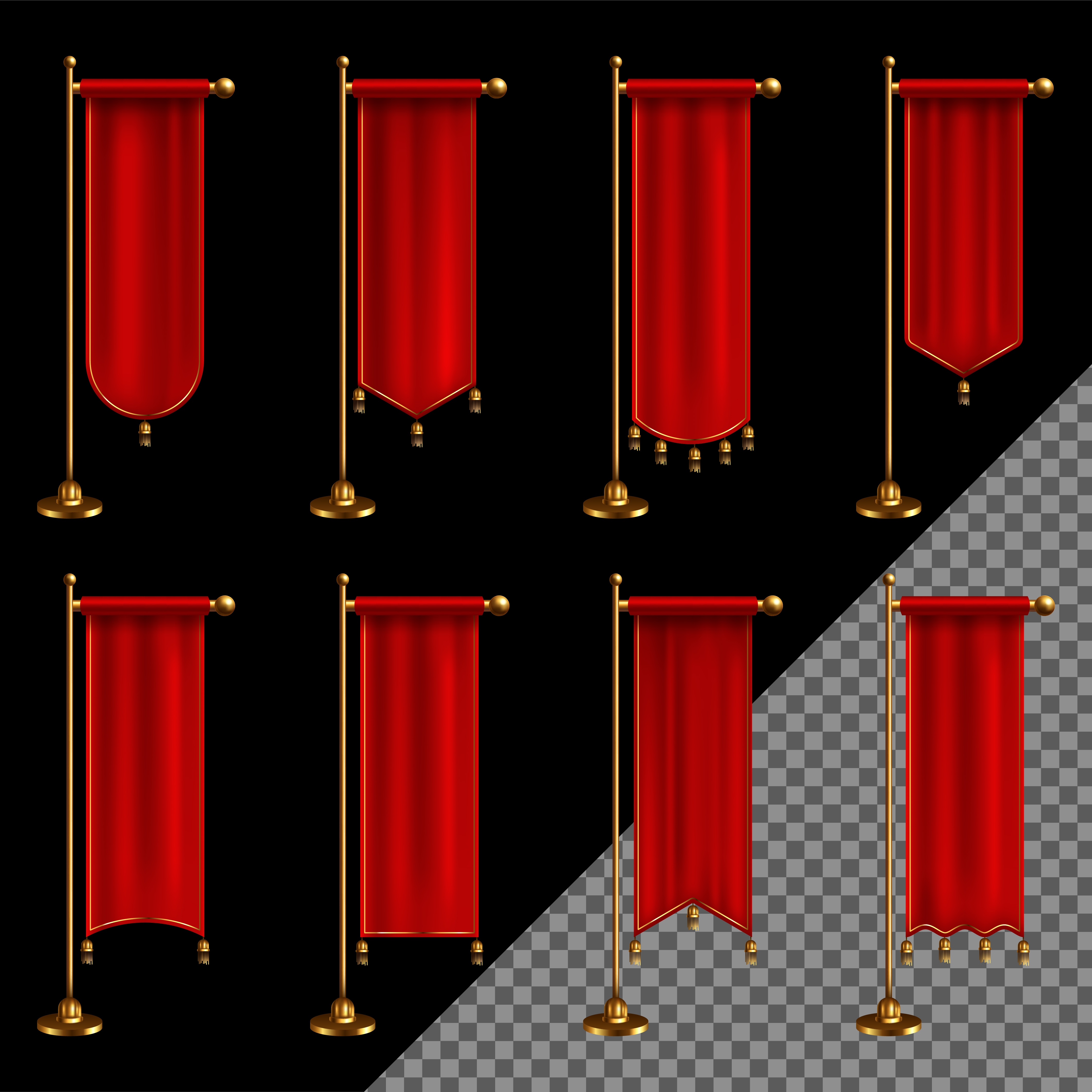 1 张 四款红色帆布旗帜素材