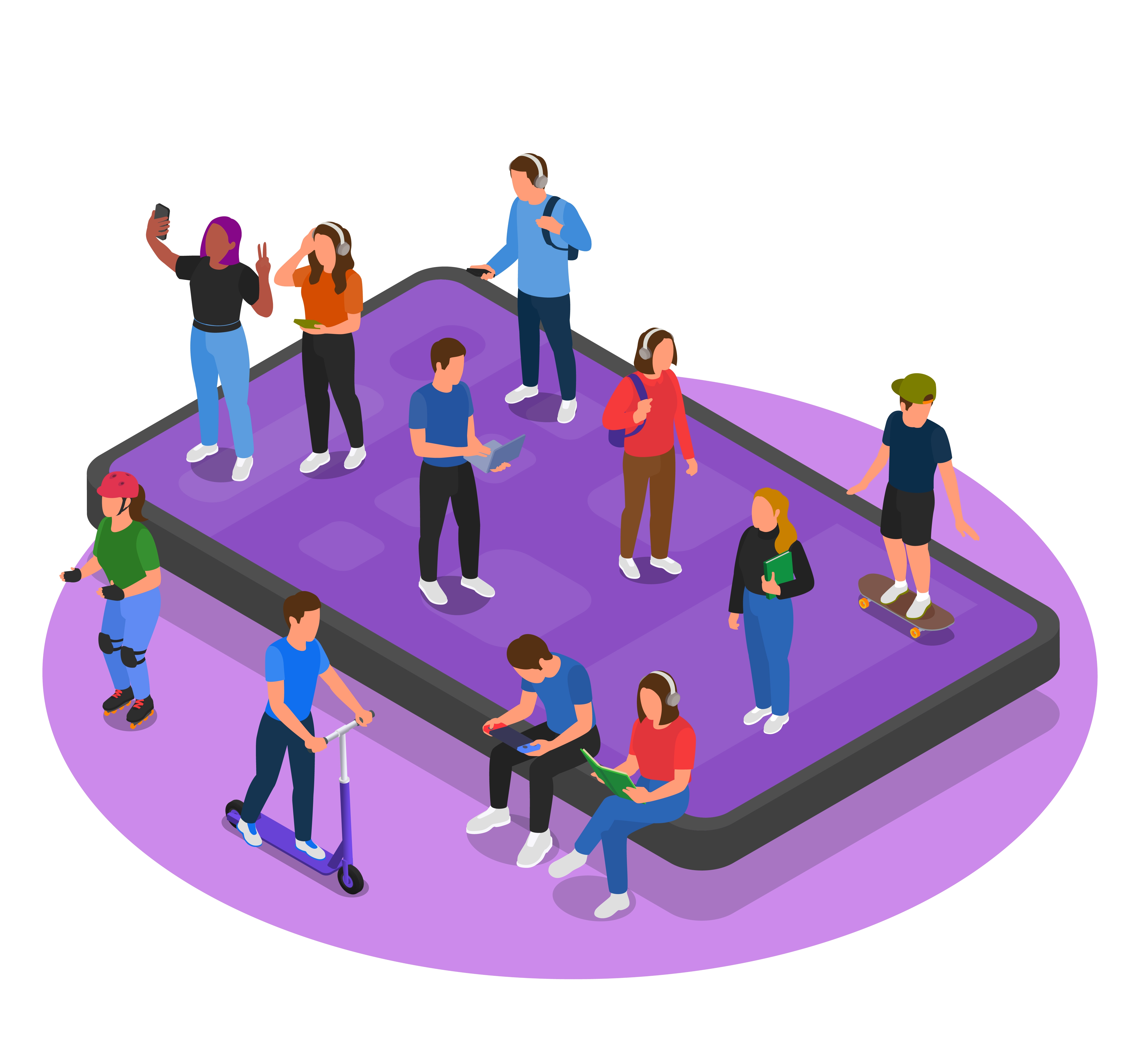 1 张 卡通看手机听音乐社交媒体素材下载