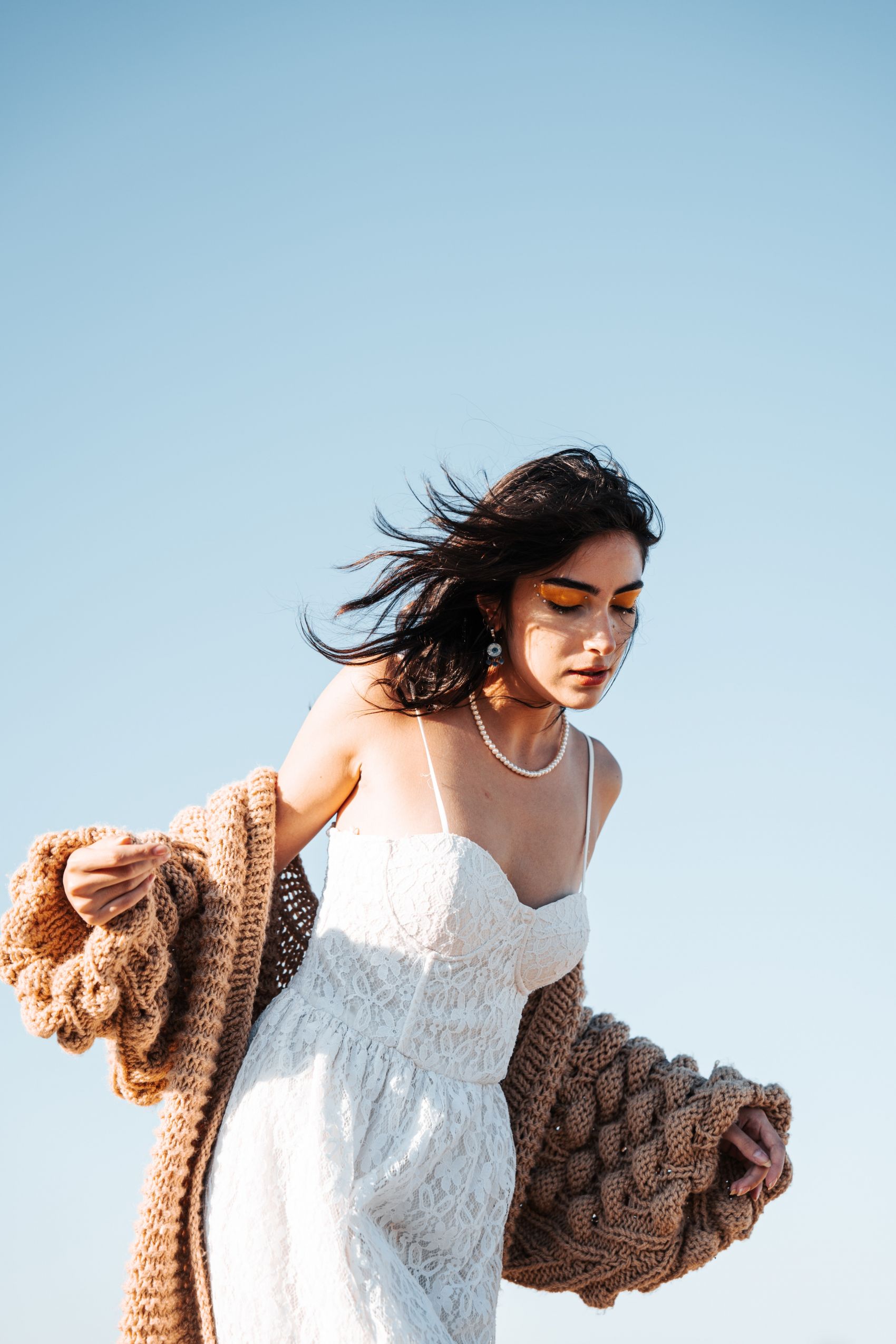 1 张 身穿白色连衣裙的东方黑发女子