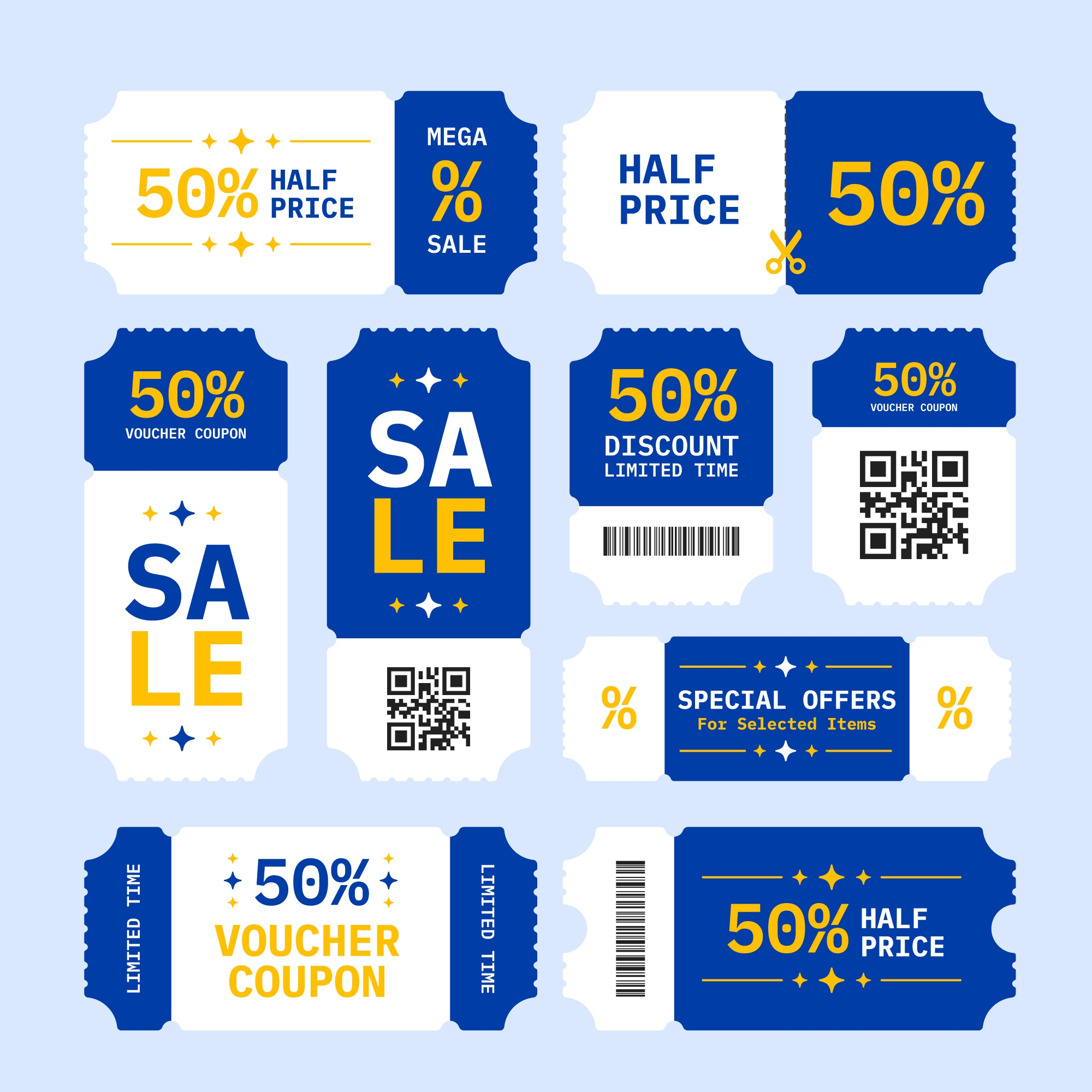 1 张 蓝白搭配的折扣降价标签素材