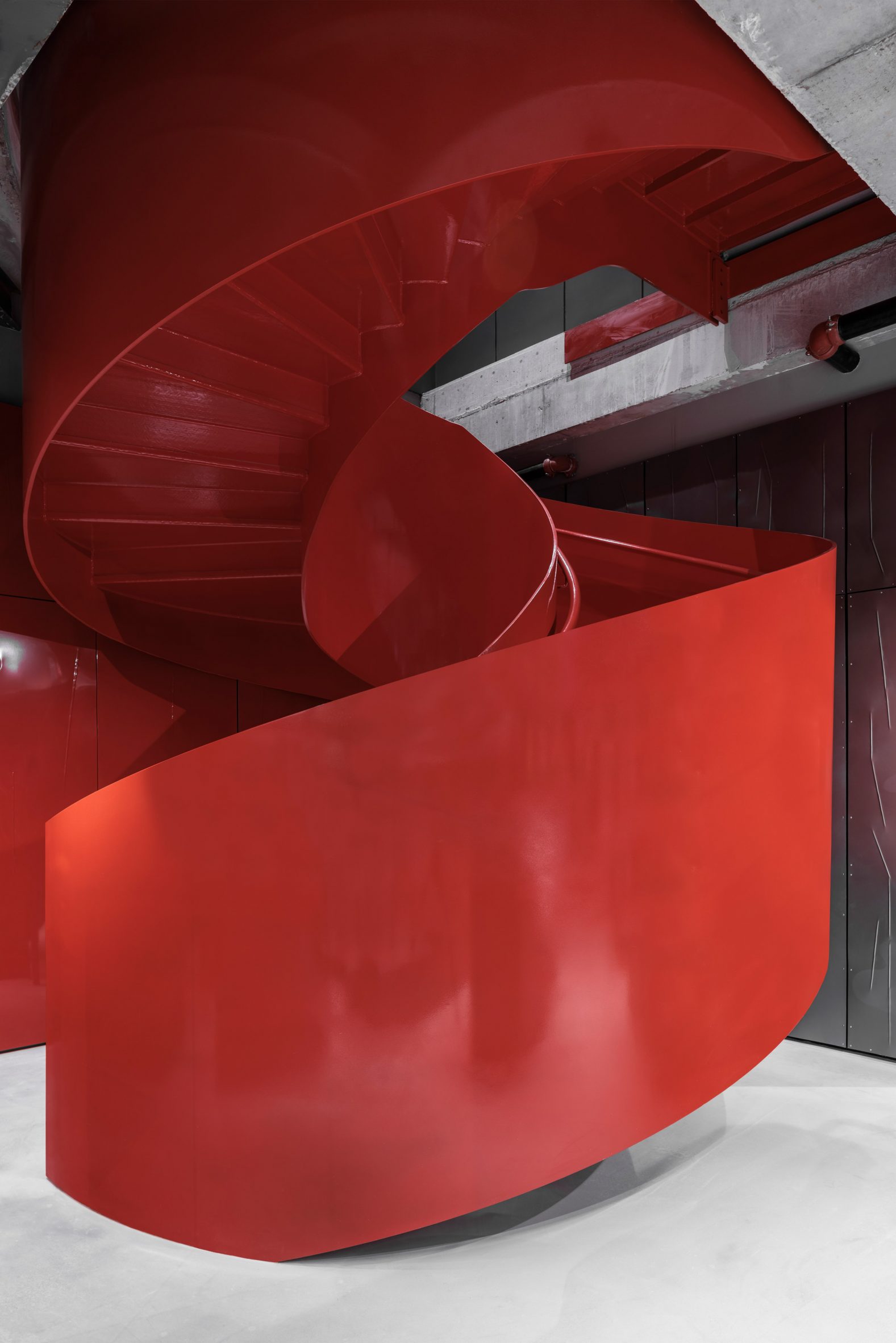 1 张 红色螺旋楼梯建筑独特景观