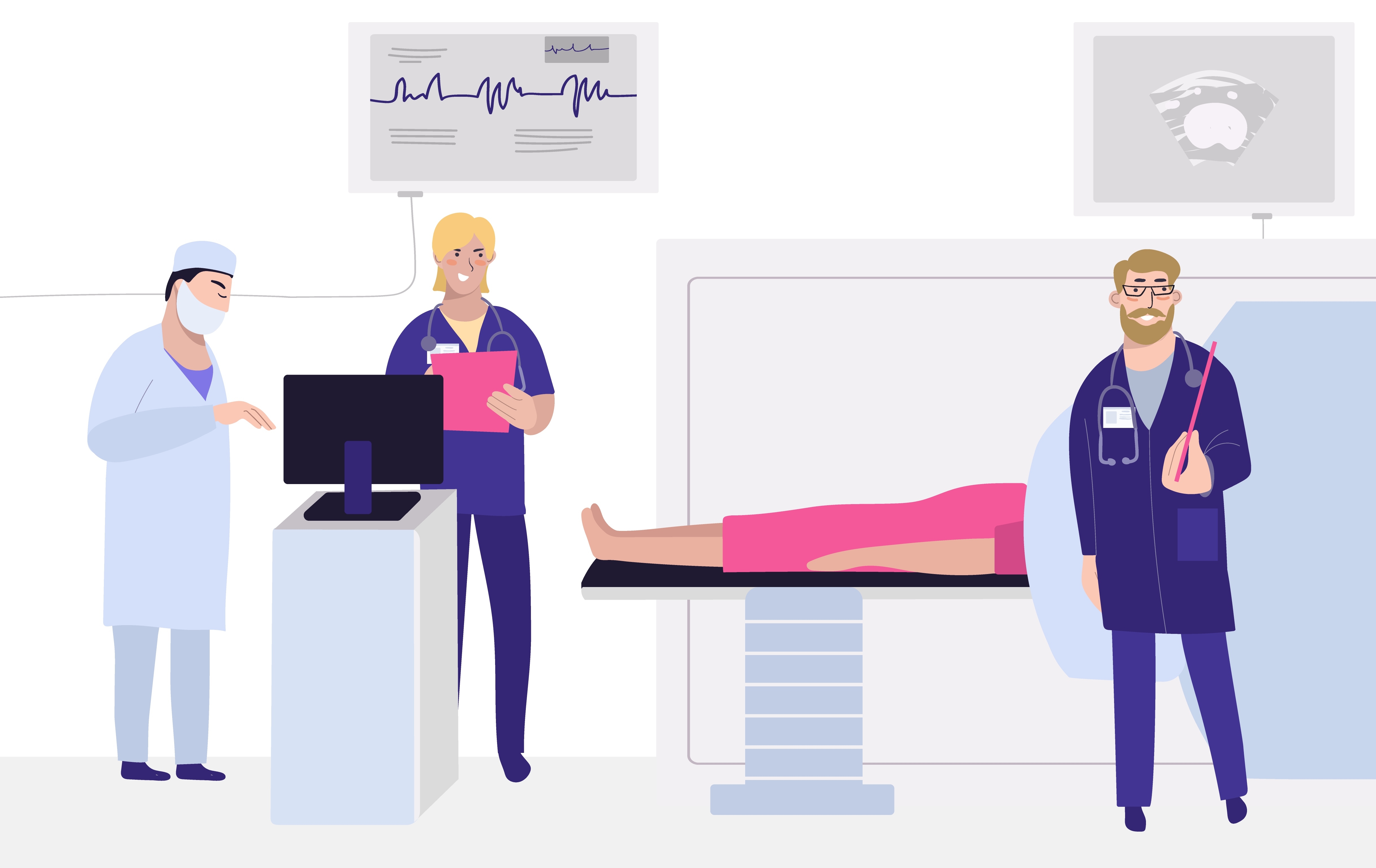 1 张 卡通给孕妇做B超检查场景素材