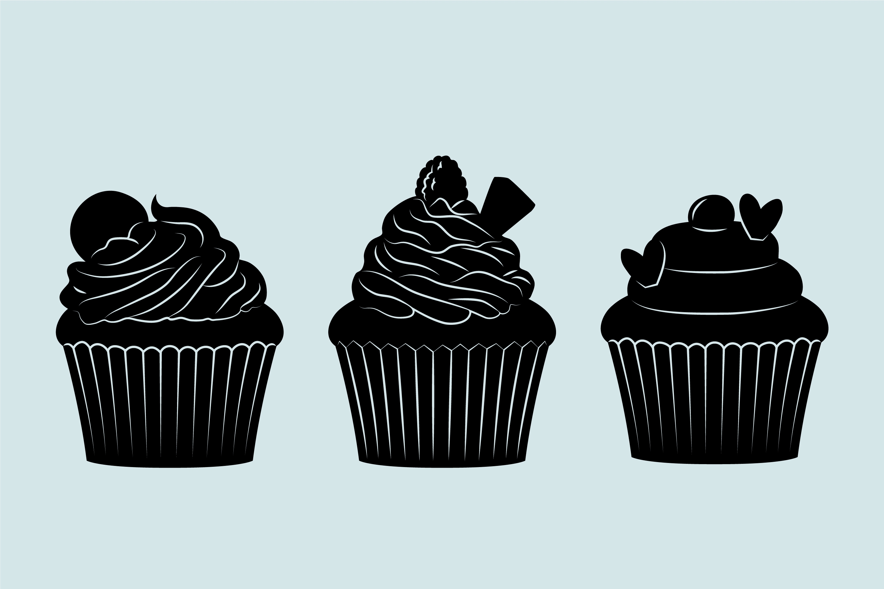 1 张 三款手绘纸杯蛋糕剪影素材