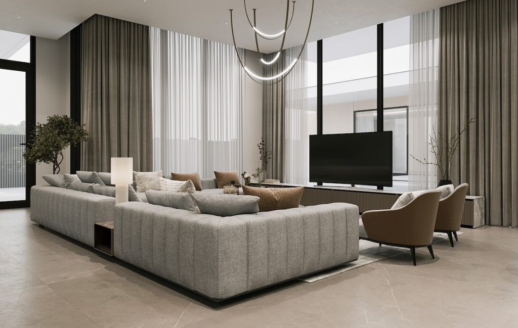 42 张 以绿色庭院为框架的灰木色调现代装饰