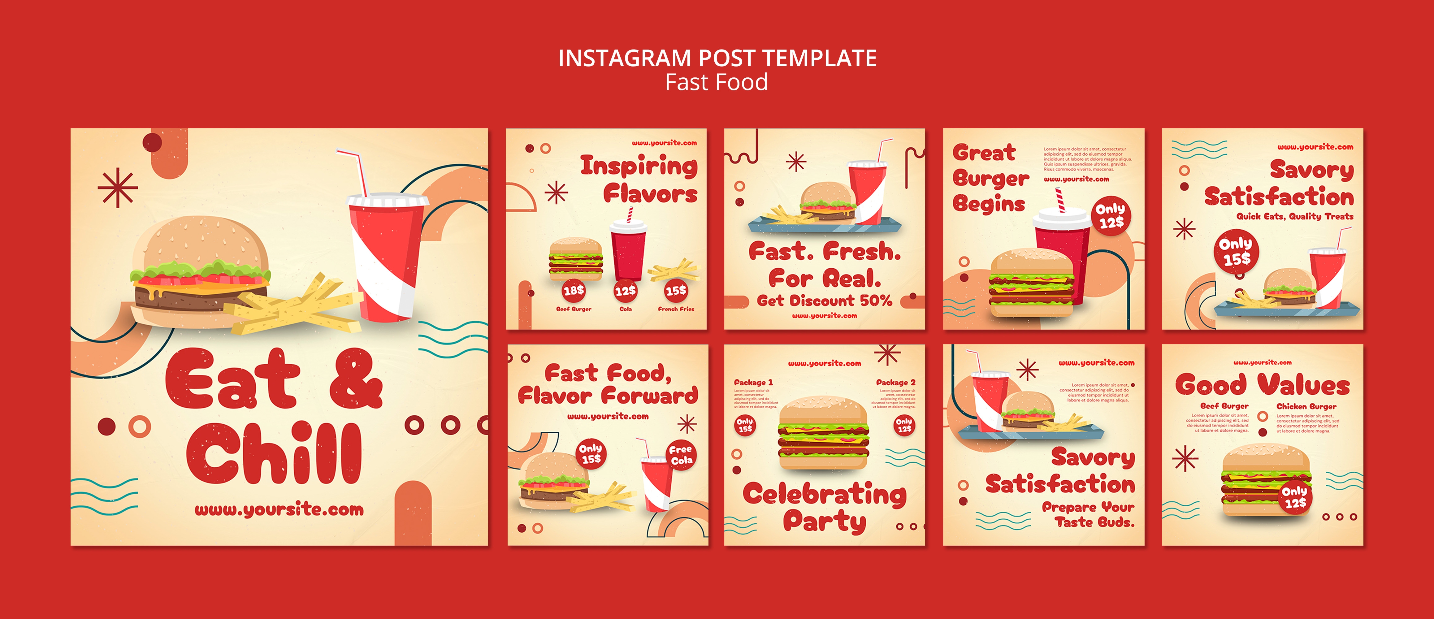 1 张 手绘九款美味快餐卡片海报素材