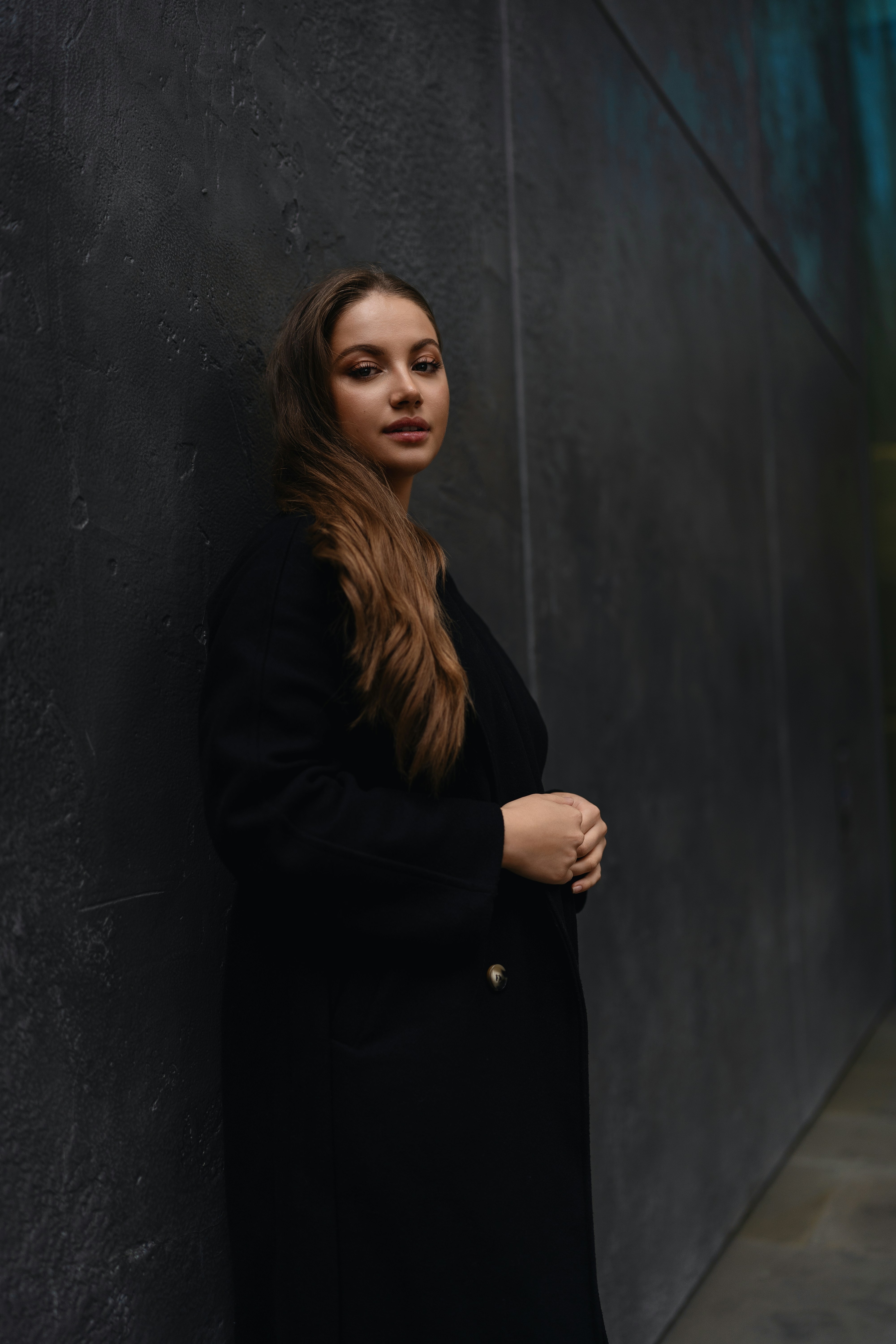 1 张 靠墙的金发女性人像