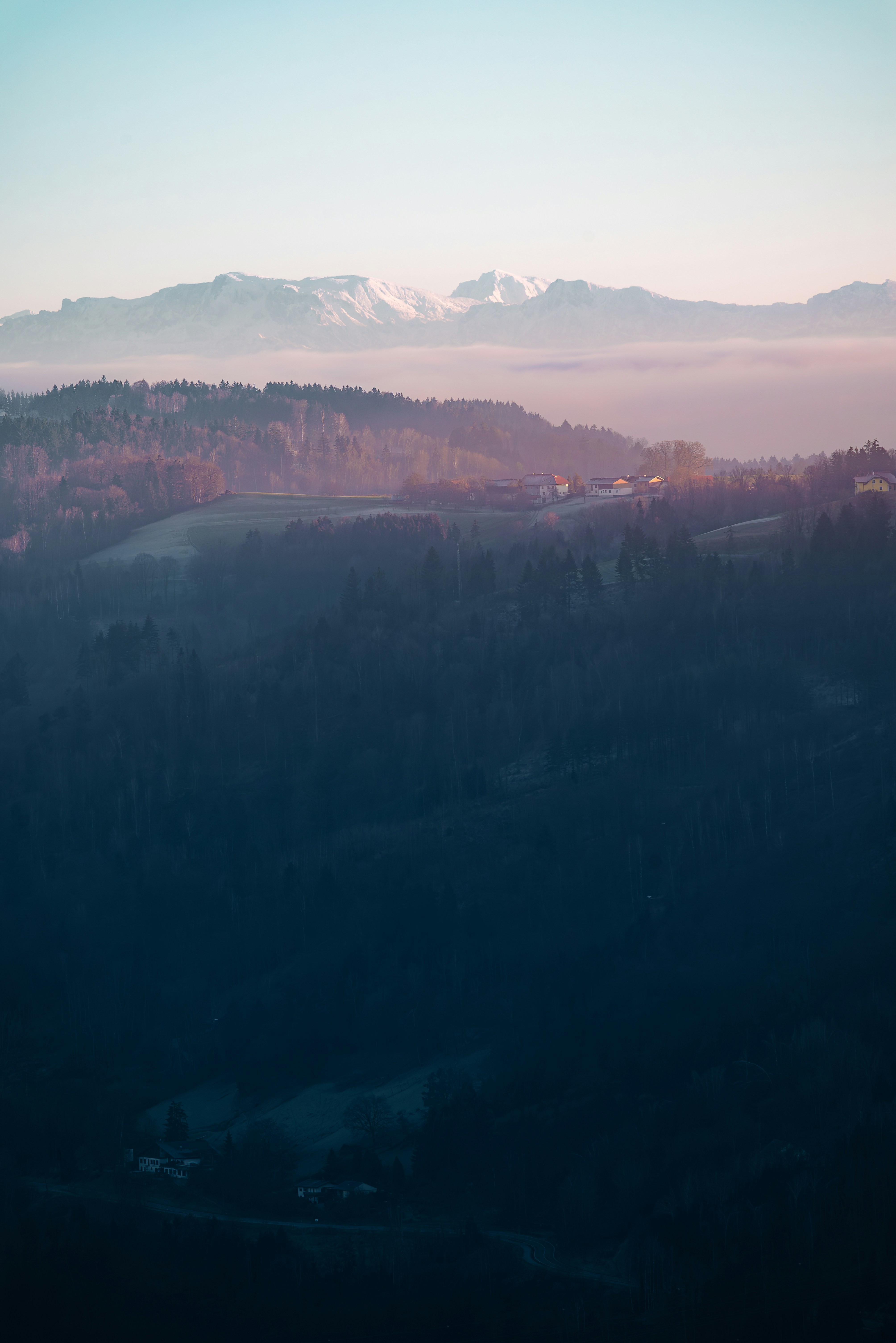 1 张 粉红色彩霞的远方大山