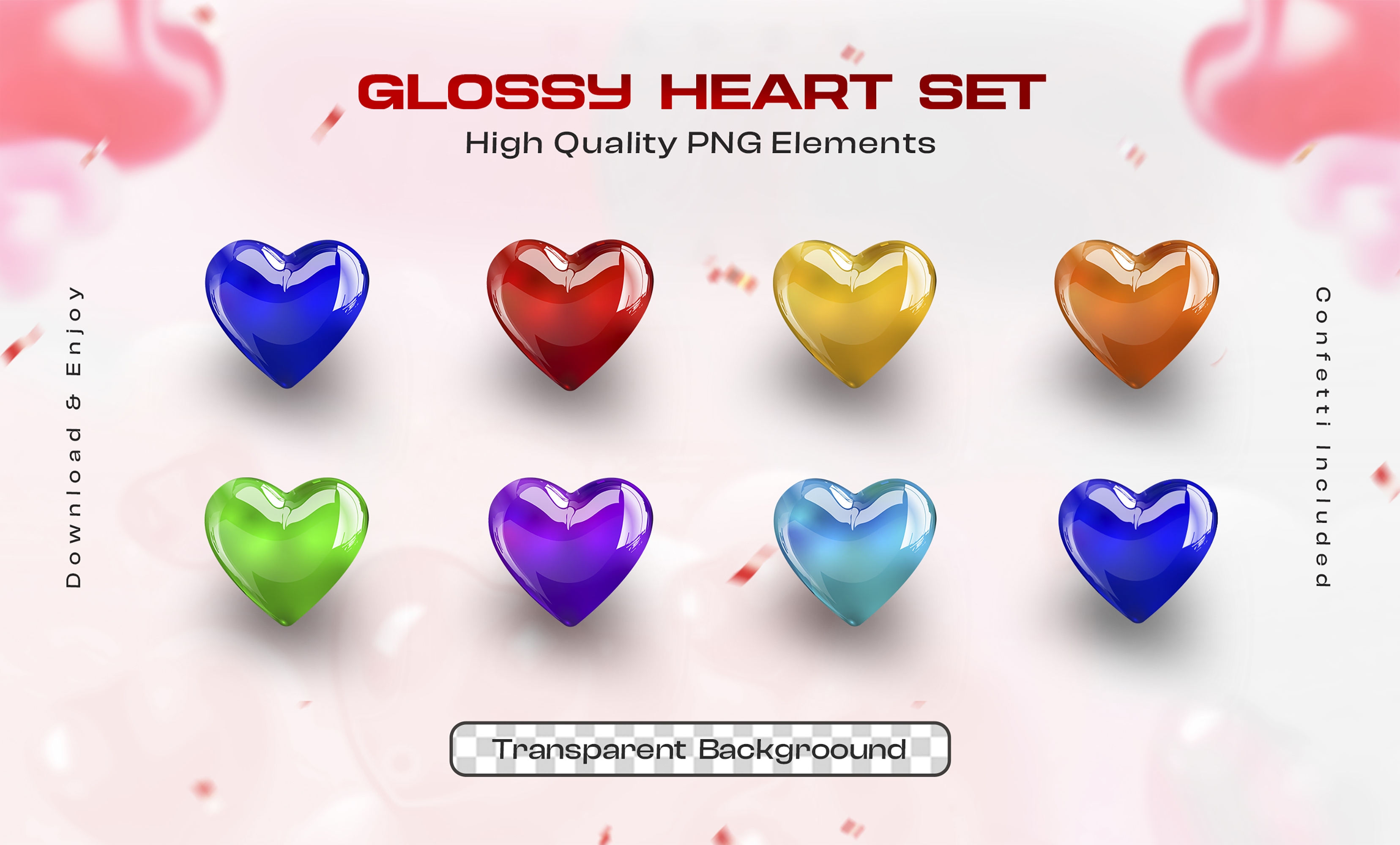 1 张 八款彩色玻璃爱心素材