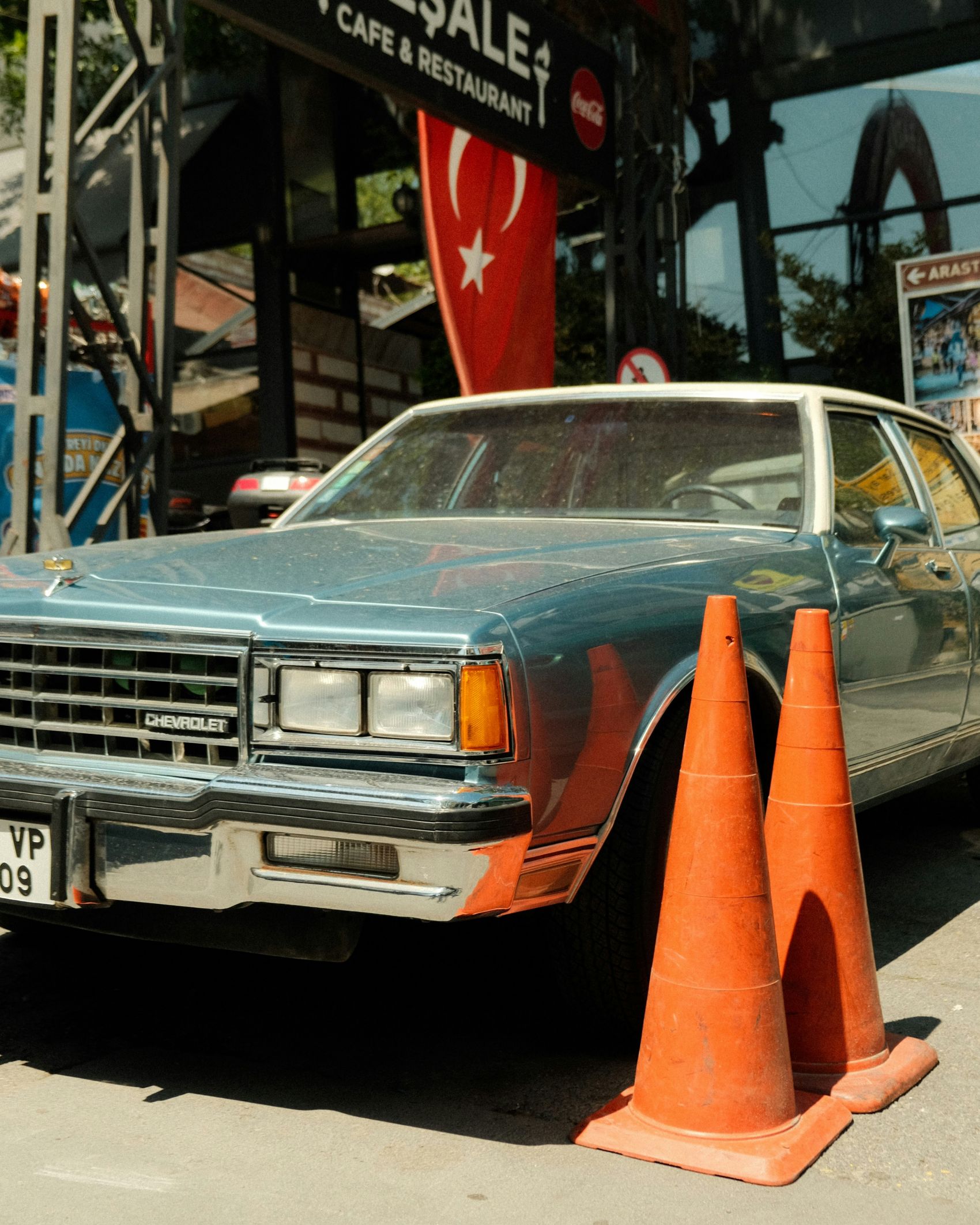 1 张 三角路锥旁边的复古老爷车