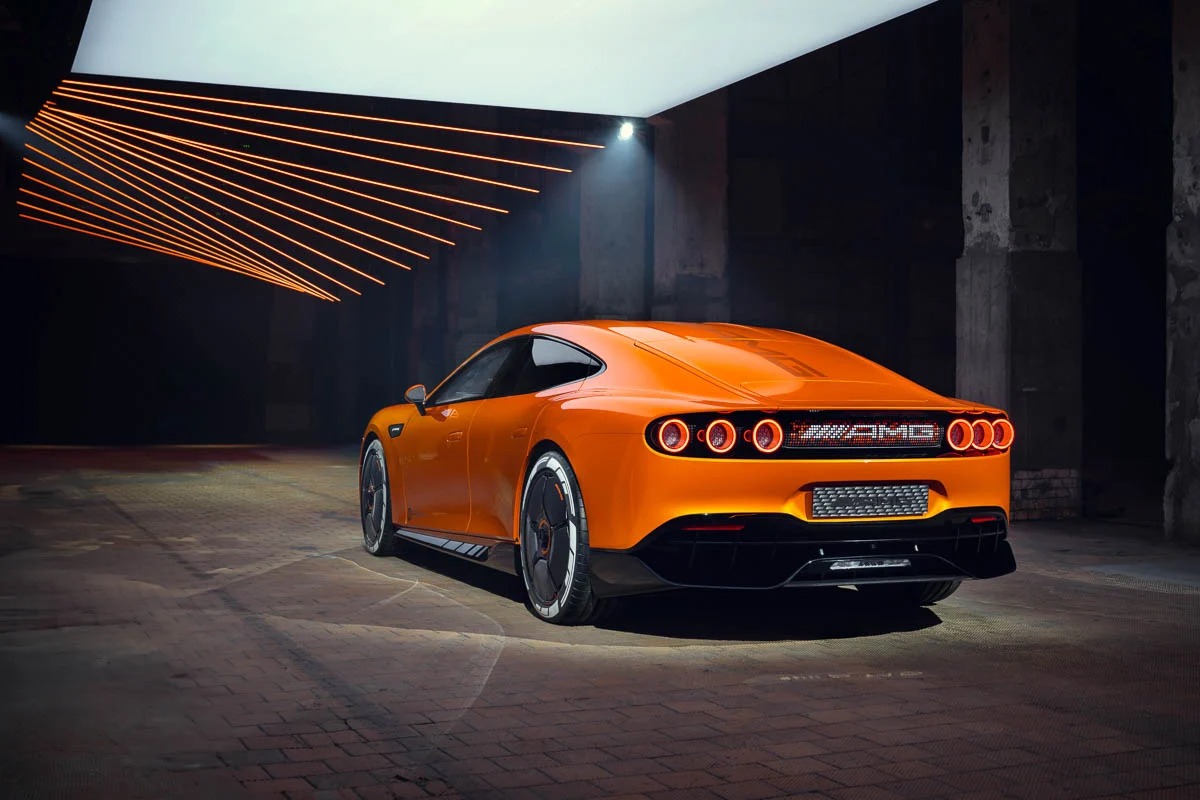 CONCEPT AMG GT XX的轮廓通过计算熟悉元素的扭曲,打破了传统跑车的比例。快背轮廓比传统GT汽车更长,形成了一个细长的温室,向后急剧变细。这种比例变化有两个目的:一方面适应电动滑板平台,另一方面产生视觉张力,使汽车即使在静止状态下也能跳跃前进