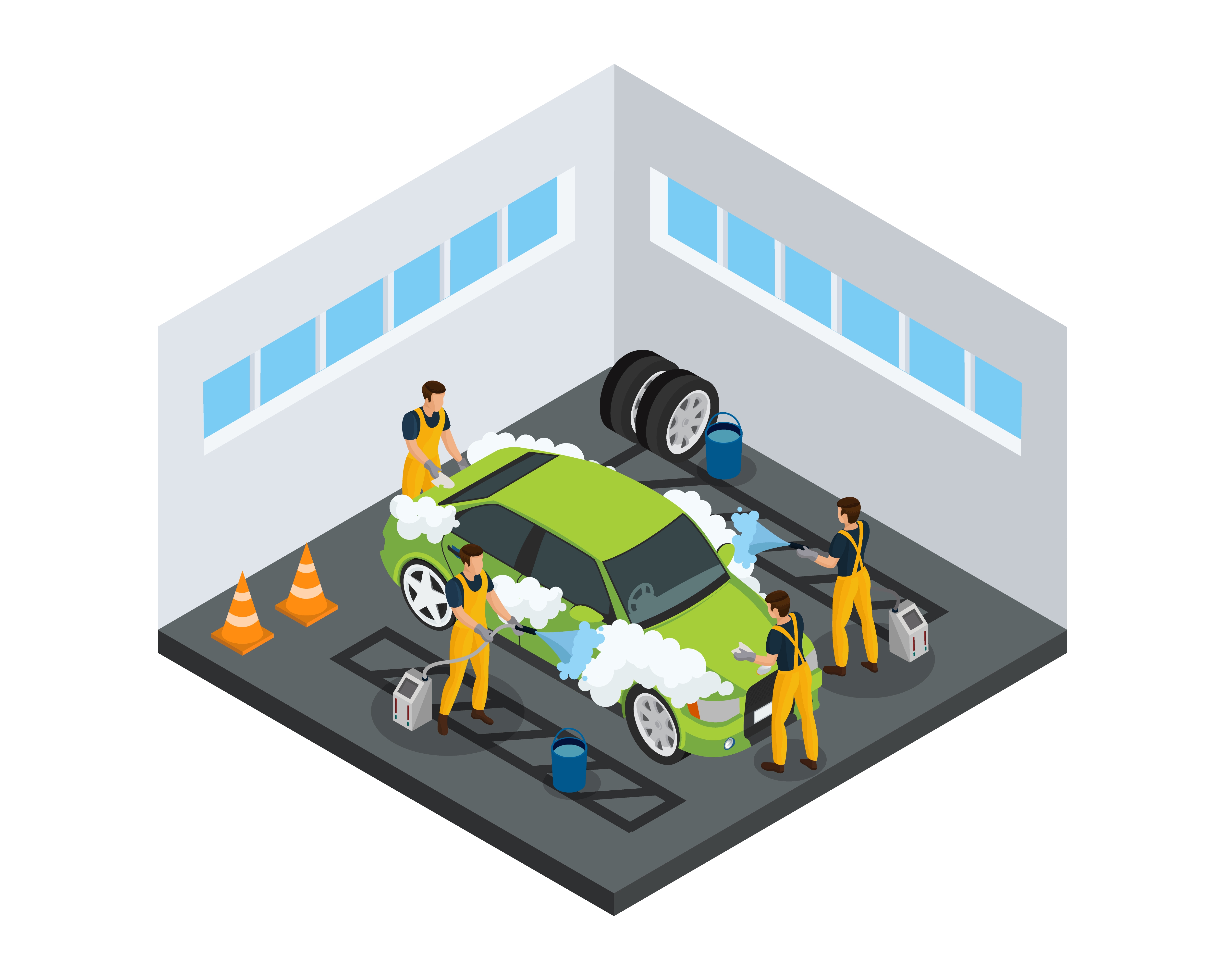 1 张 卡通自助汽车清洗套件平面组合