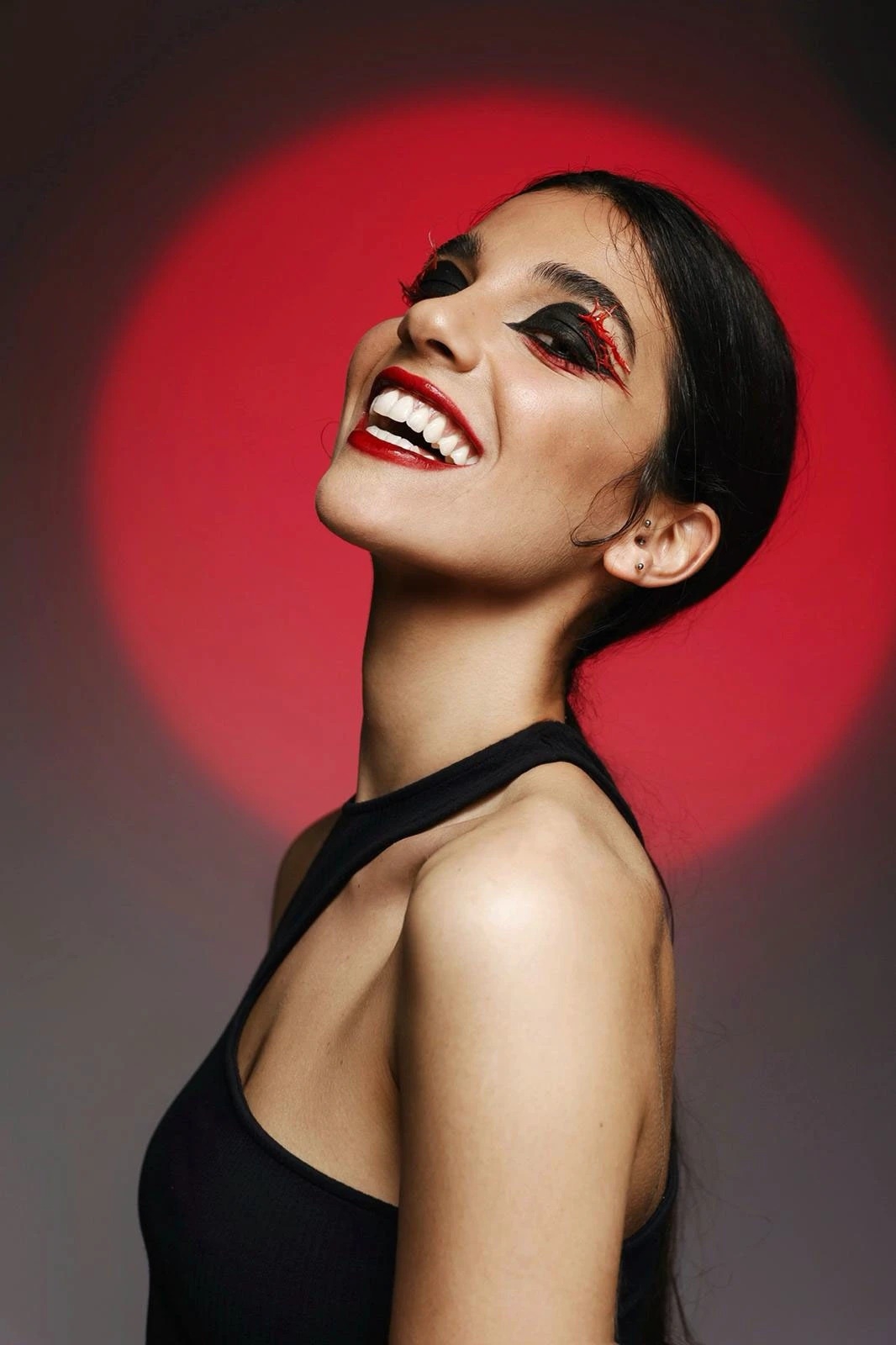 1 张 开朗露齿笑的黑衣女郎