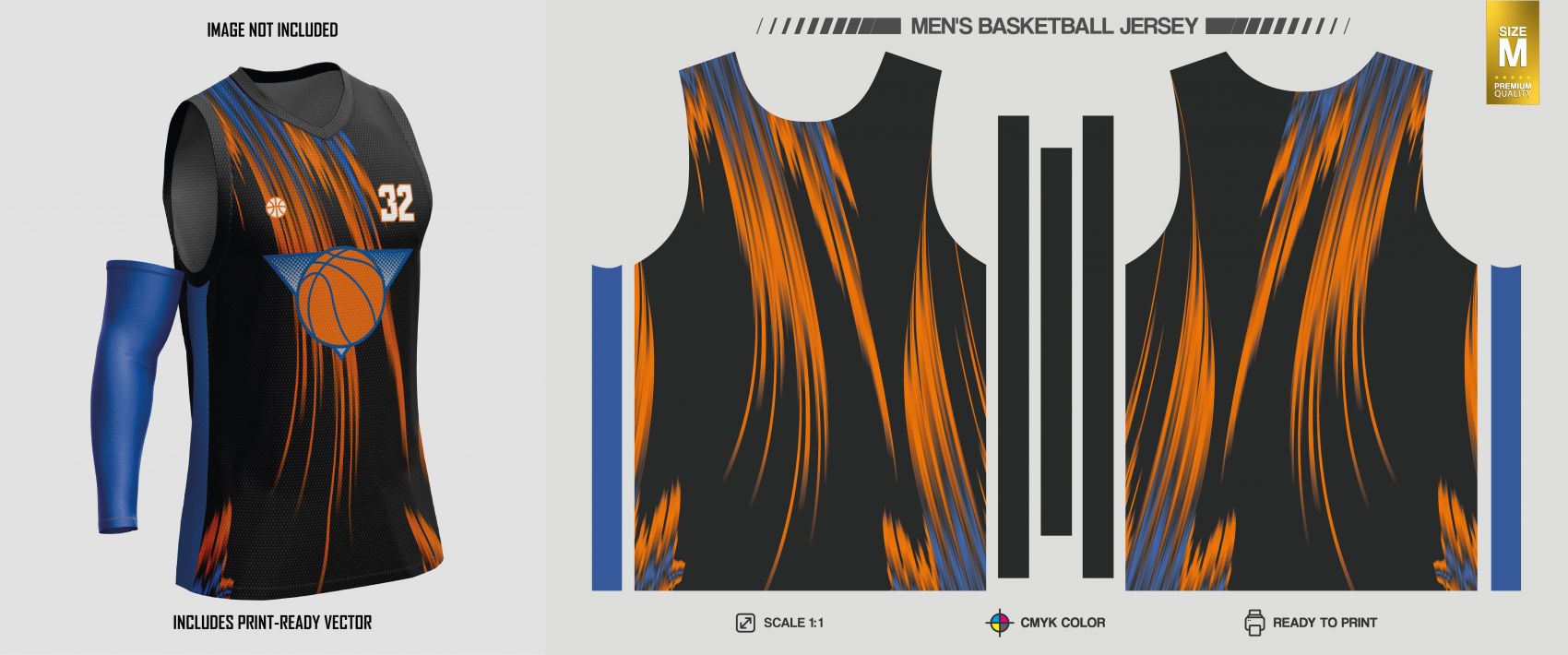 1 张 黑橙蓝撞色篮球球衣矢量设计素材