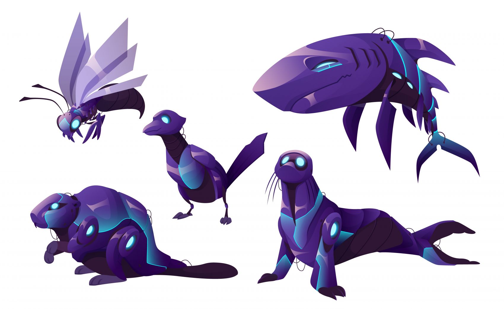 1 张 五款机械动物形象插画素材