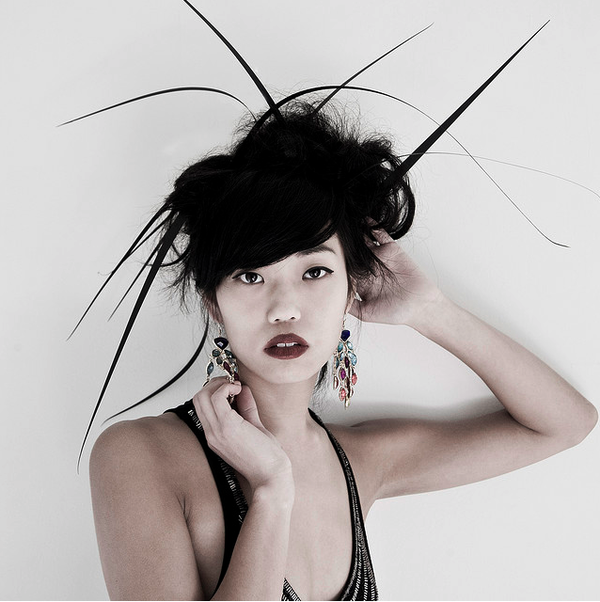 1 张 黄色条纹下的头饰女郎