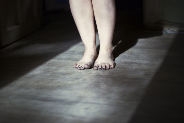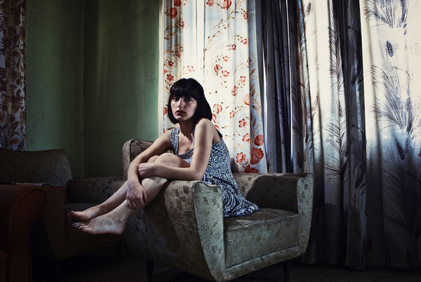 1 张 红色灯光下的妇女人像