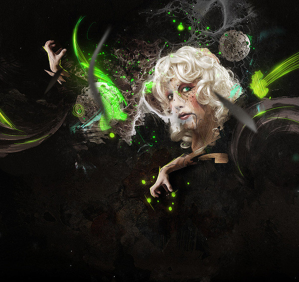 1 张 黑底上的黄绿流光线条