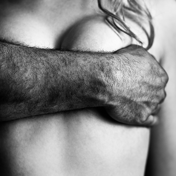 1 张 双手自我拥抱的长发美女黑白照片