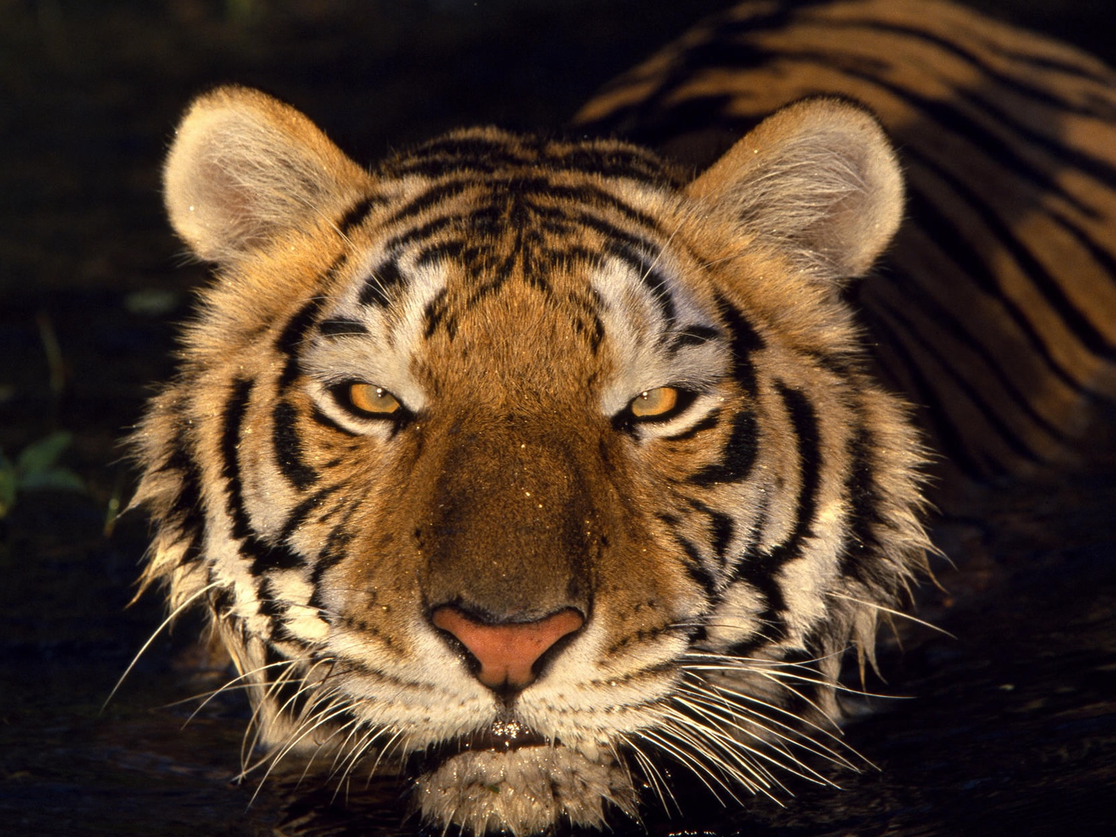 1 张 困在水中咆哮的凶猛老虎