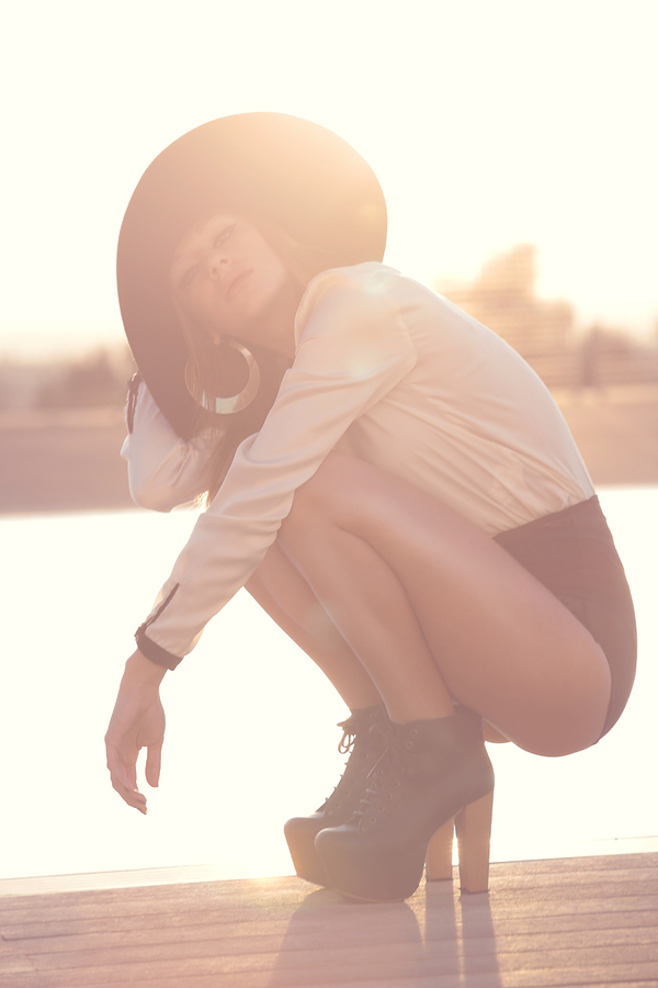 1 张 逆光背光下的金发女郎侧面人像