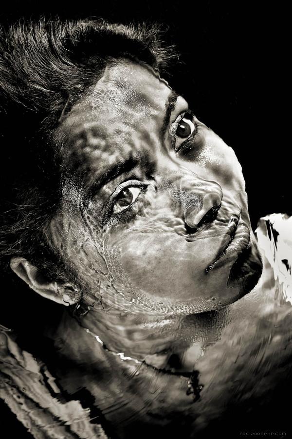 1 张 抽象黑白人像重影图