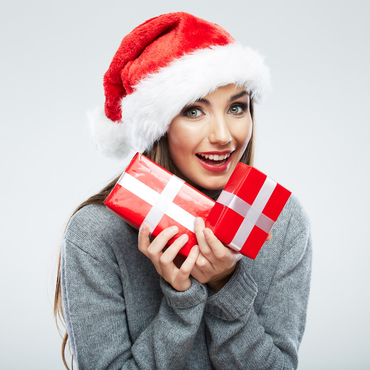 1 张 微笑的圣诞帽子姑娘