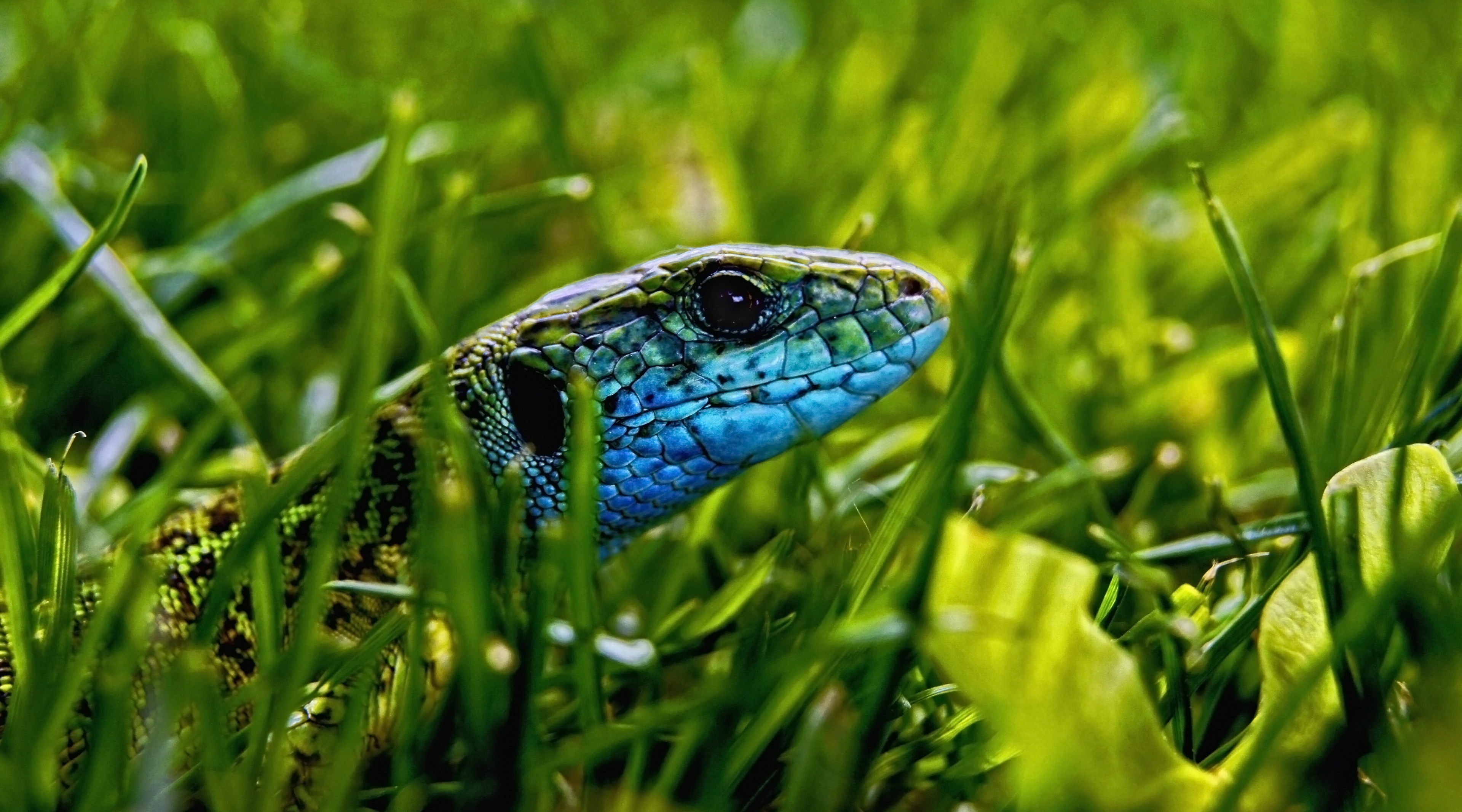 1 张 隐藏在绿色草丛中的绿色蟒蛇