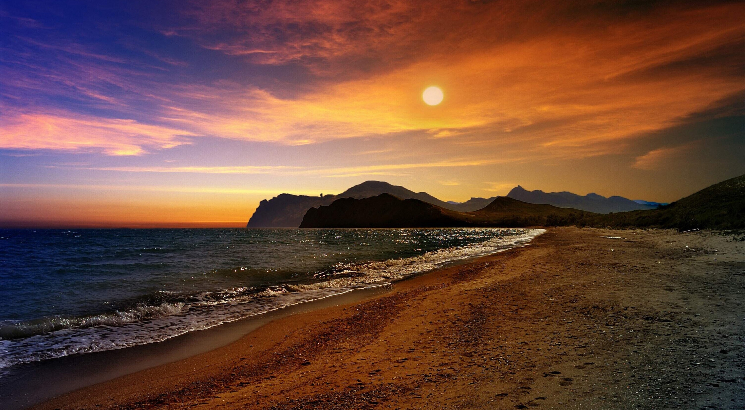 1 张 落日碎金,漫染浪卷沙岸