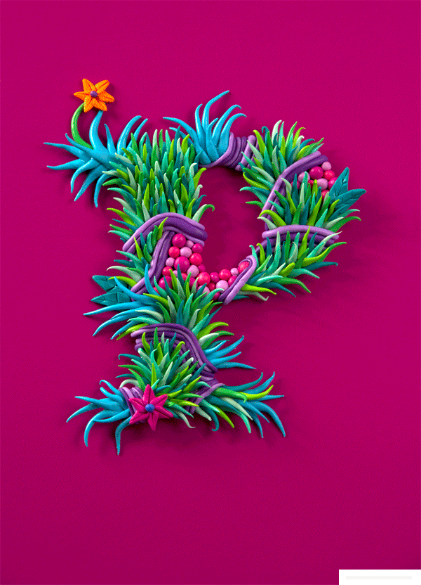 3 张 Lettering Experiments-有机纹理彩色油漆立体刻字设计