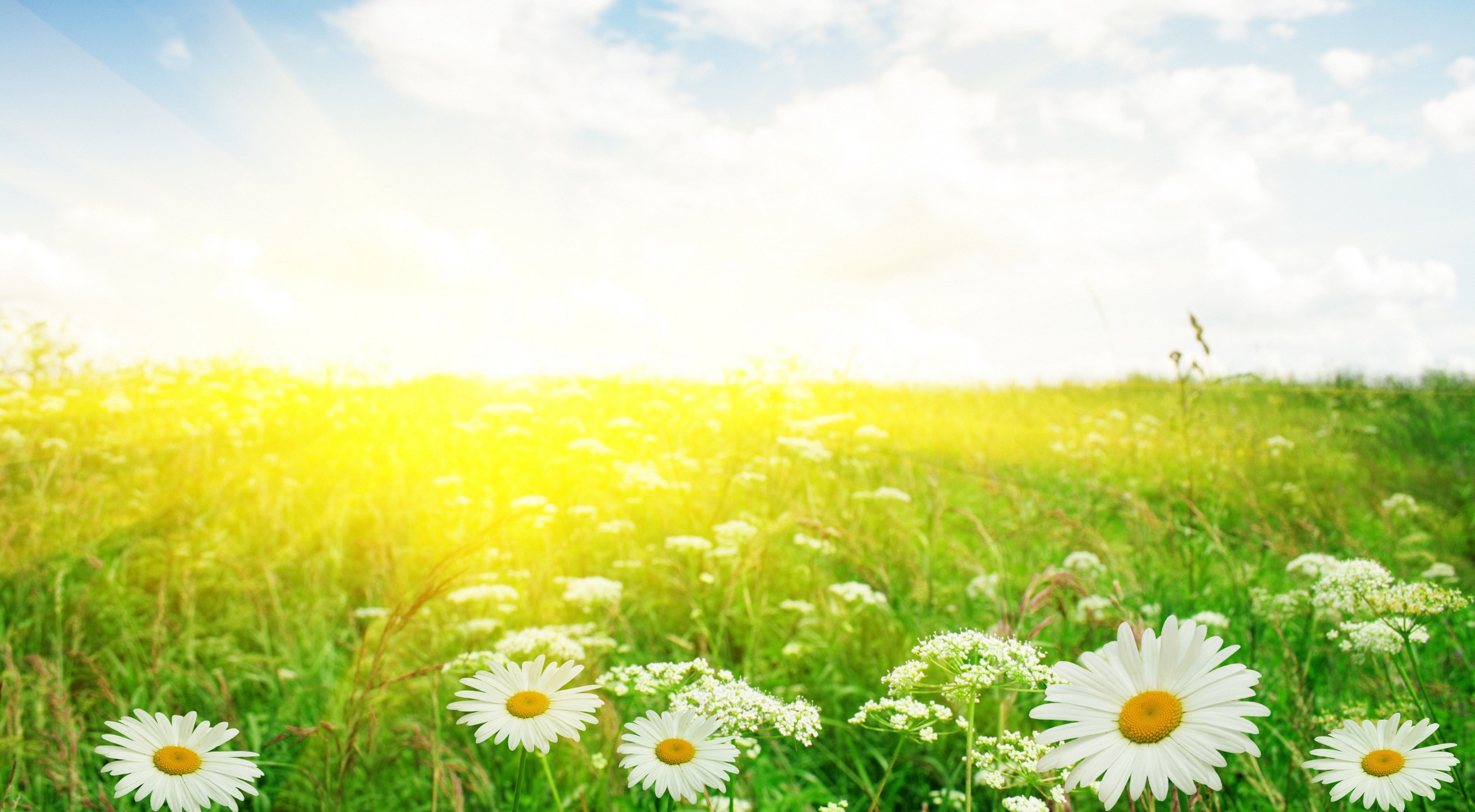 1 张 春天绿色草原白云山丘白色雏菊素材