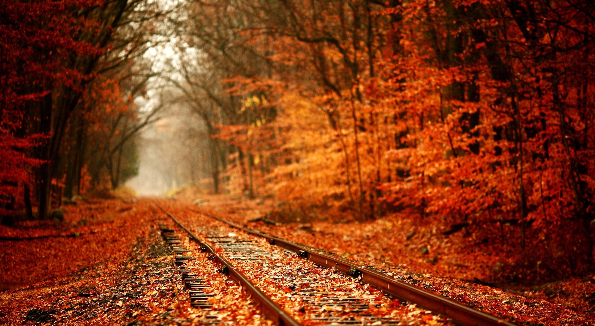 1 张 阳光明媚的秋季森林铁路