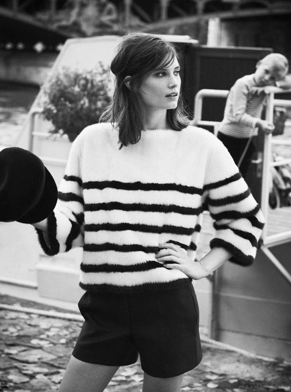 11 张 德雷克伯内特-VOGUE时尚澳大利亚2013年2月-经典法国布列塔尼条纹,沿着塞纳河畔拍摄,完全展示巴黎风格的黑白街头时装影像