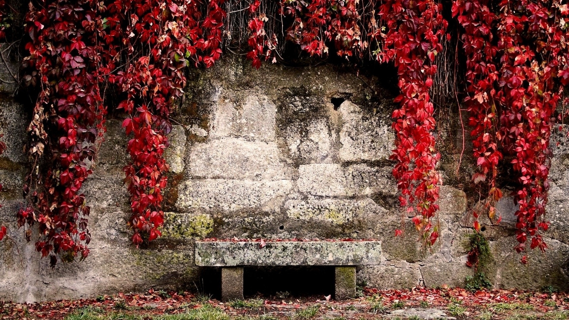 1 张 石墙红叶挂壁板凳