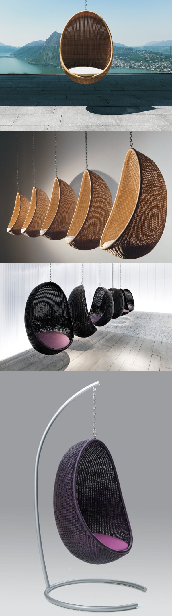 9 张 蛋形吊床-类似鸡蛋吊椅,采用柳条为编制材料。丹麦家具设计师Nanna Ditzel作品