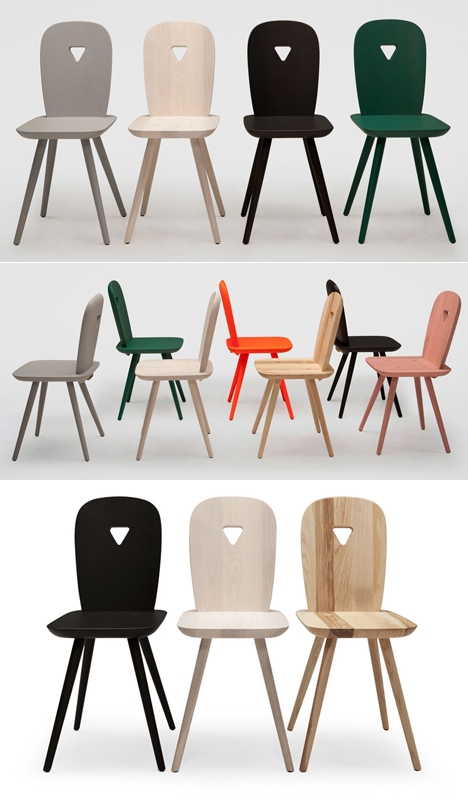 10 张 米兰设计周-木制椅子-意大利威尼斯设计师Luca Nichetto作品,采用了圆润的线条和刺靠背小倒三角形洞