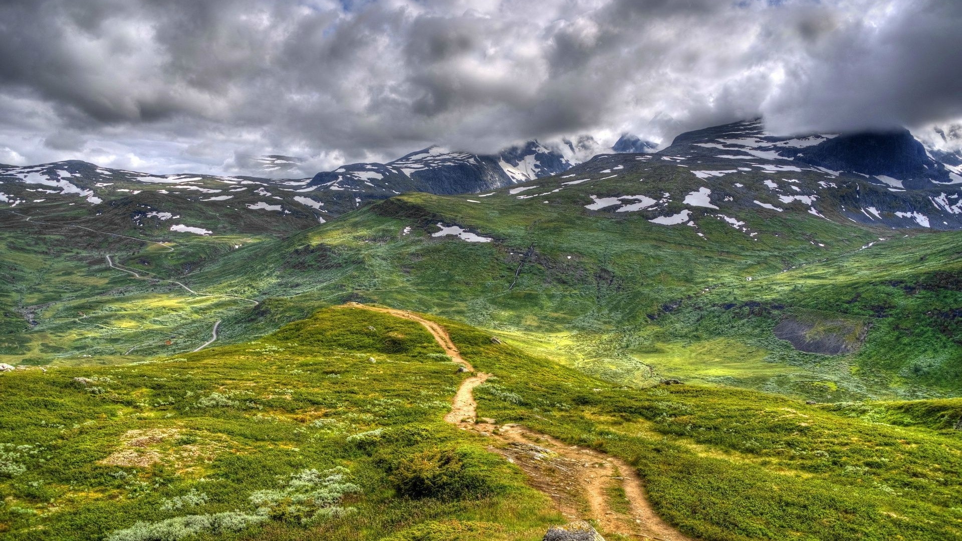 1 张 高清晰绿色田野车轮黄泥路壁纸