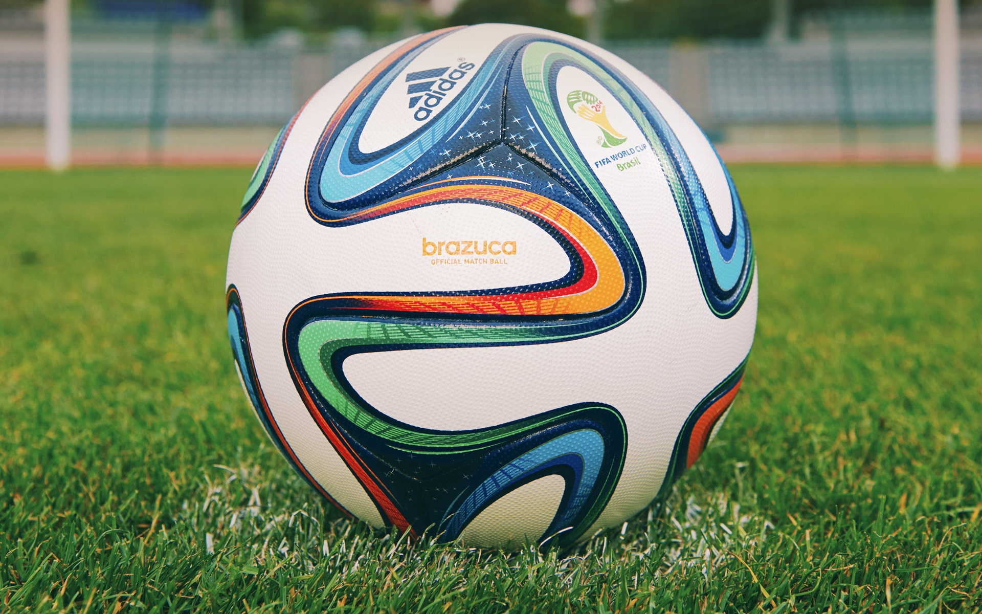 1 张 草坪上的足球-2014巴西世界杯比赛橙黑球高清壁纸下载