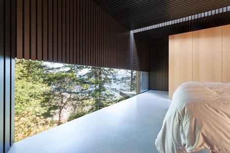 24 张 惠斯勒滑雪场旁边倾斜屋顶的房子-位于加拿大,有460多平方米的家,采用木材铺就的不规则形状滑雪小屋,灵感来自流下的雪水晶体形式。