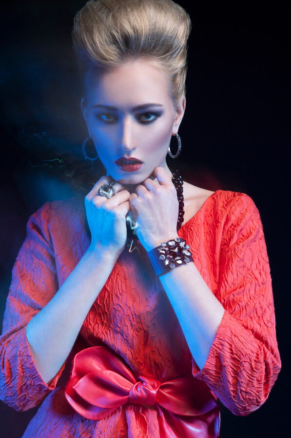 1 张 红色灯光下的妇女人像
