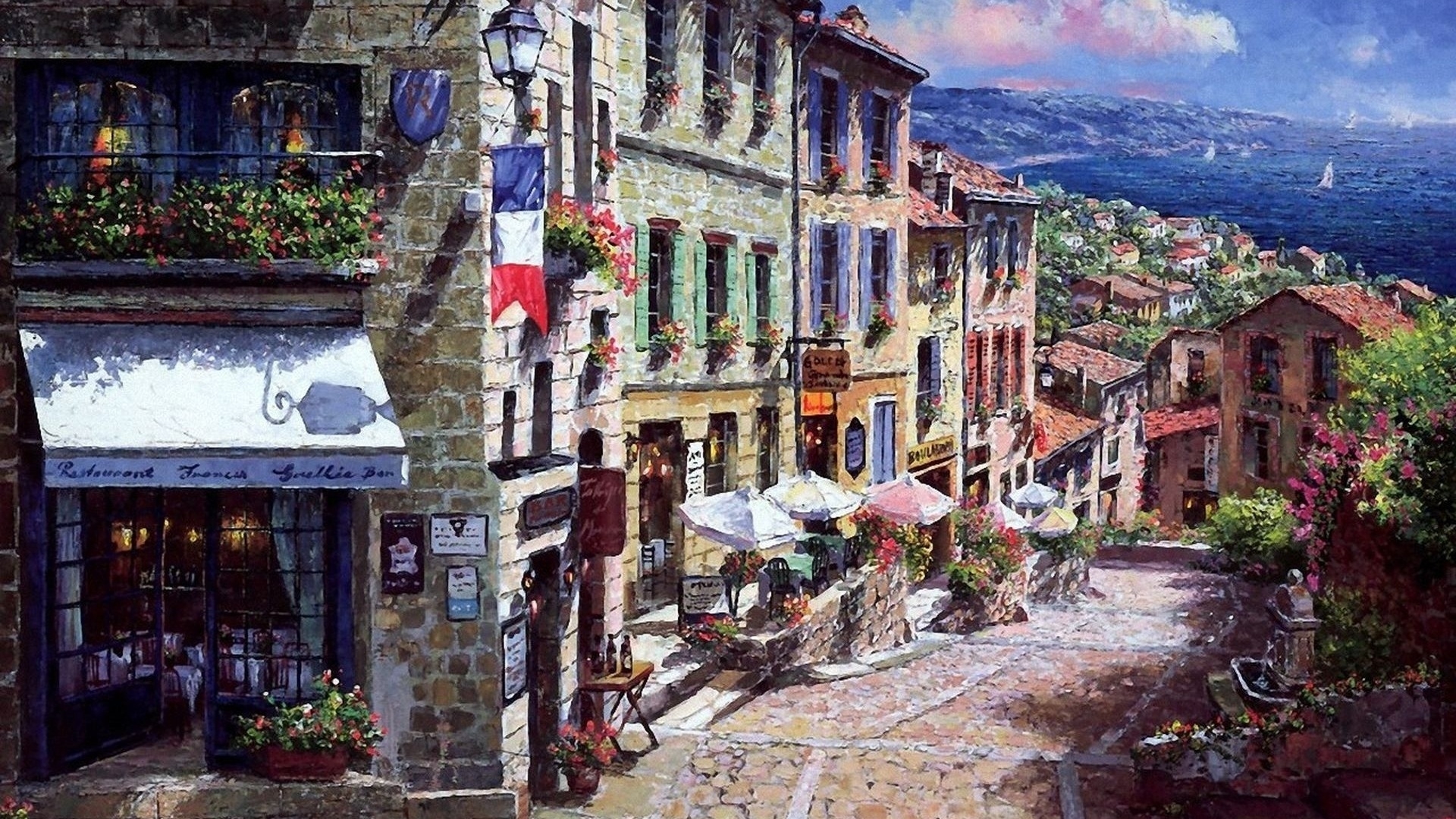 1 张 高清晰油画老镇餐厅壁纸