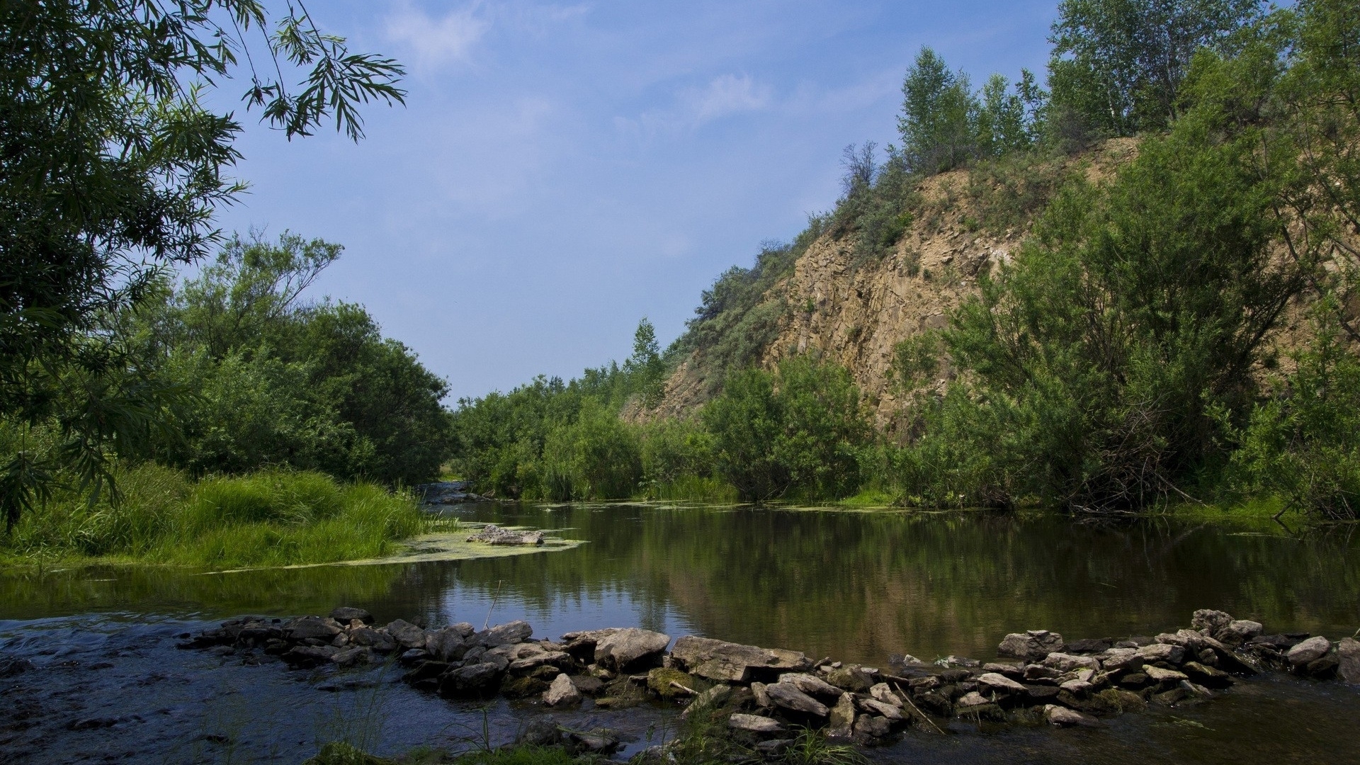 1 张 春天户外绿色花丛中的小溪溪流
