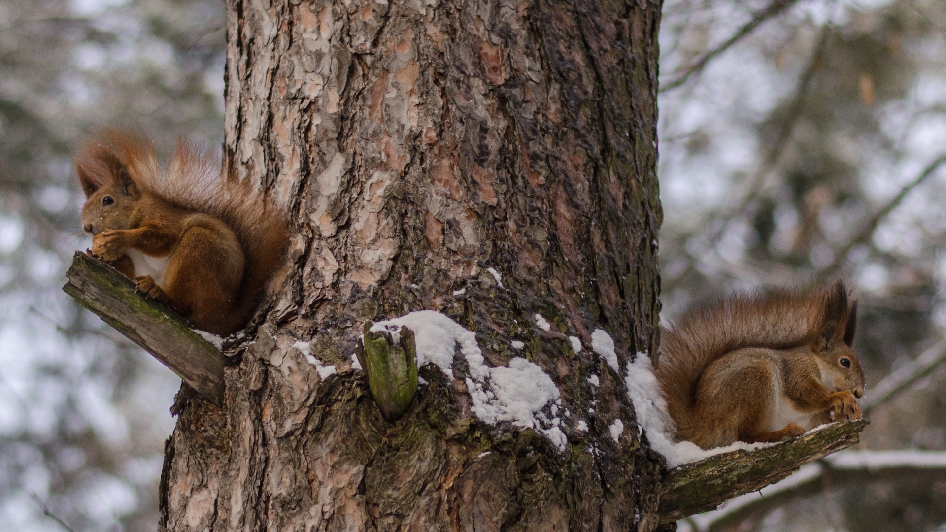 1 张 树干上吃松子的小松鼠